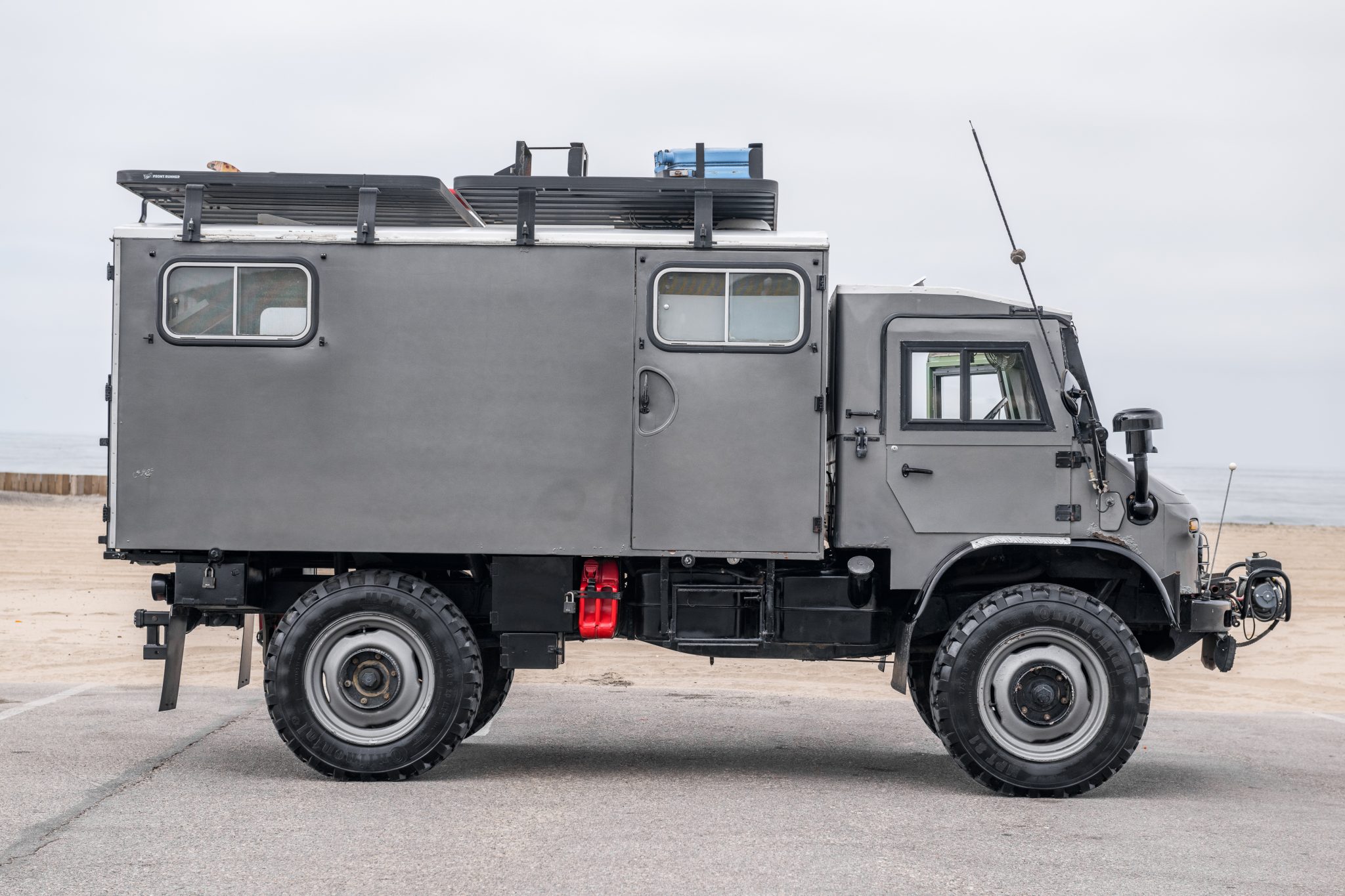 The 20” steel wheels are finished in gray and mounted with 275/80 Continental MPT 81 tires. A matching spare is housed under the driver’s side of the truck, and another is affixed to the rear of the box. A spare steel wheel and Koni shock absorbers are included in the sale.