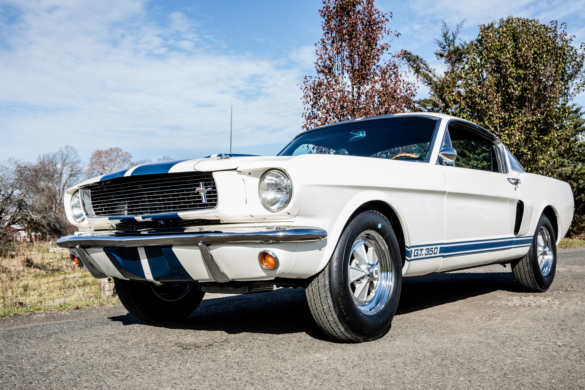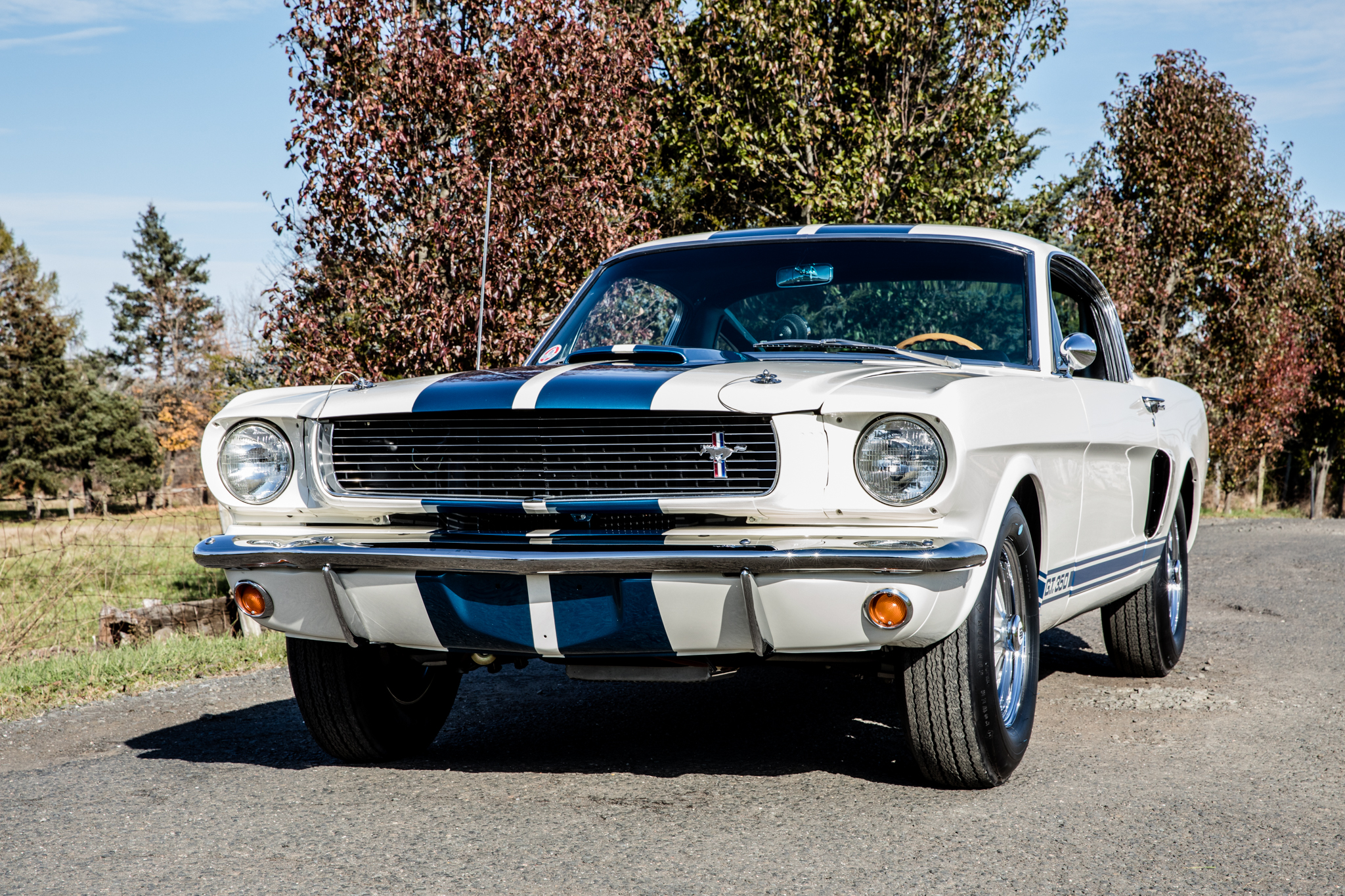 Polished 15″ Shelby/Cragar alloy wheels were optional on early 1966 Shelby Mustangs, and they are mounted with Goodyear “blue dot” bias-ply tires that were reportedly installed during the refurbishment. A matching spare wheel is stowed in the trunk. The car is said to feature a 1965-style GT350 suspension setup with Koni shocks and override traction bars as well as upper control arms with lower mounting points compared to later 1966 models. Kelsey-Hayes front disc brakes were standard equipment on GT350s, as were larger rear drum brakes than those used on standard Mustang models.