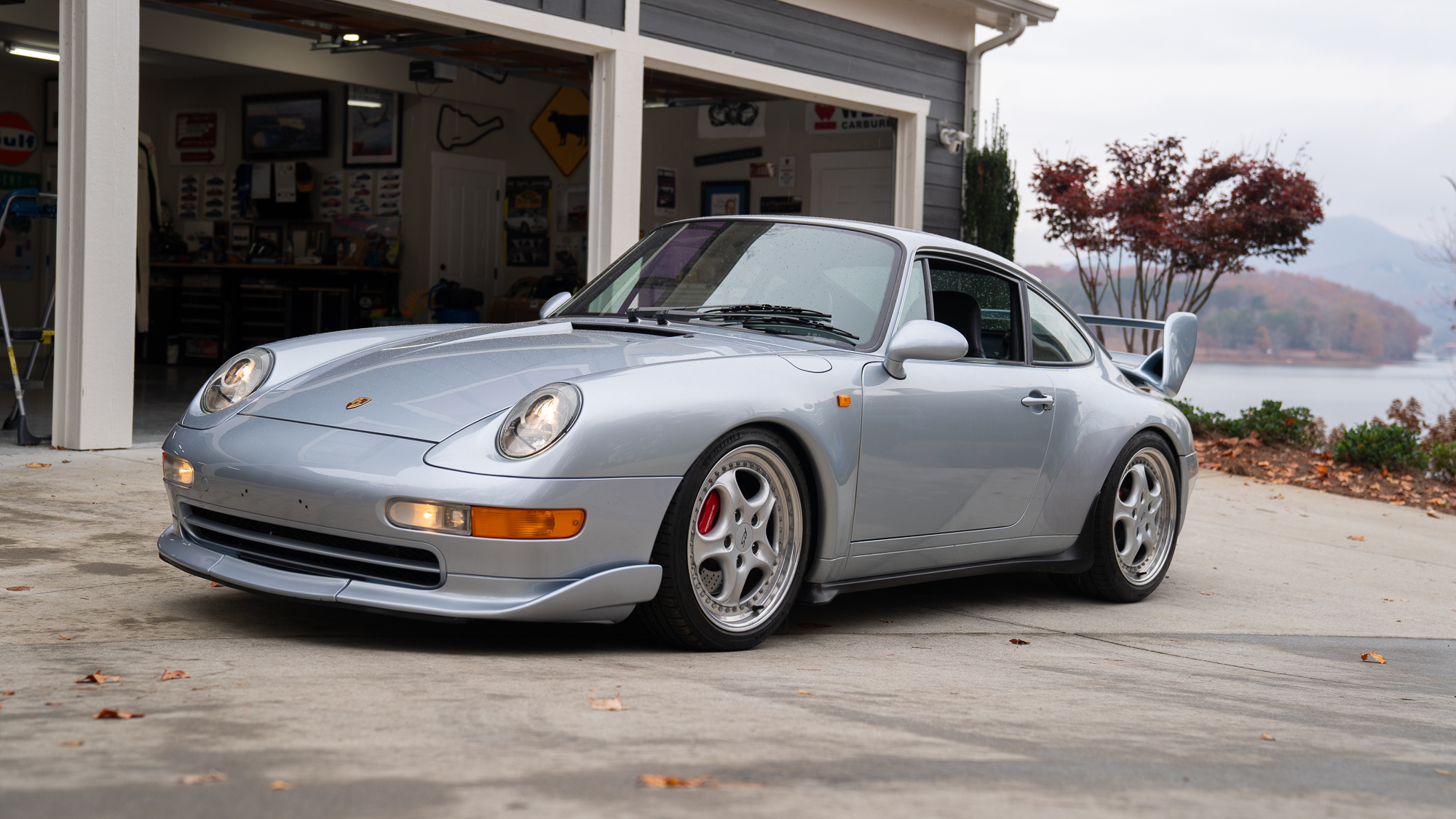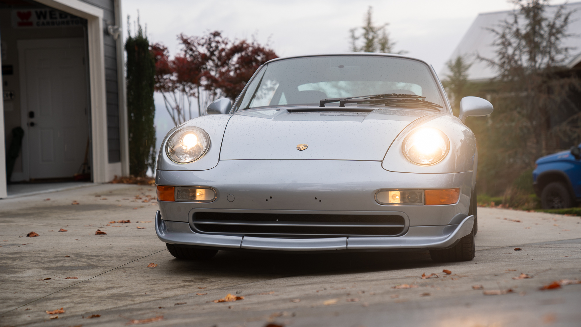 The 18″ Speedline three-piece wheels were standard on the Carrera RS, and they are mounted with 225/40 front and 265/35 rear Michelin Pilot Sport All Season 4 tires. A red-painted spare wheel with a Vredestein space-saver tire is stowed in the front trunk. The Carrera RS featured a lower ride height compared to the standard Carrera as well as Bilstein dampers, adjustable front and rear anti-roll bars, and power-assisted steering. Stopping power is provided by red-painted four-piston calipers over cross-drilled rotors at all four corners.
