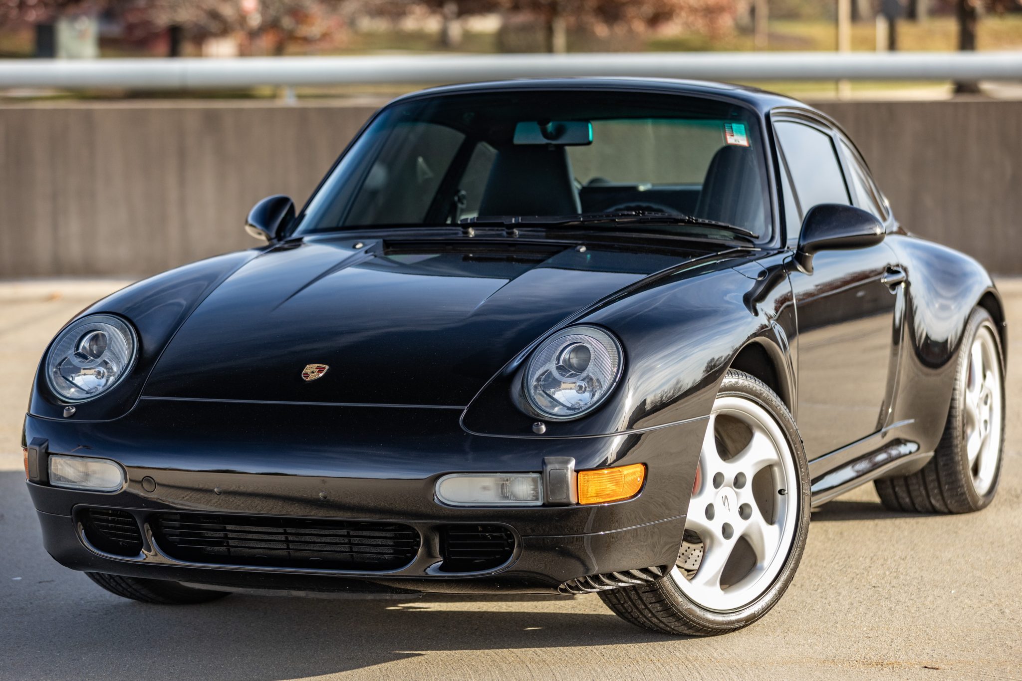 The 18″ Turbo Twist wheels are mounted with 225/40 front and 285/30 rear Pirelli P Zero Rosso tires. The car features an Automatic Brake Differential (ABD), and the 993 was the first 911 to feature multi-link rear suspension. Braking is handled by red-finished Porsche-branded calipers over cross-drilled rotors at all four corners.