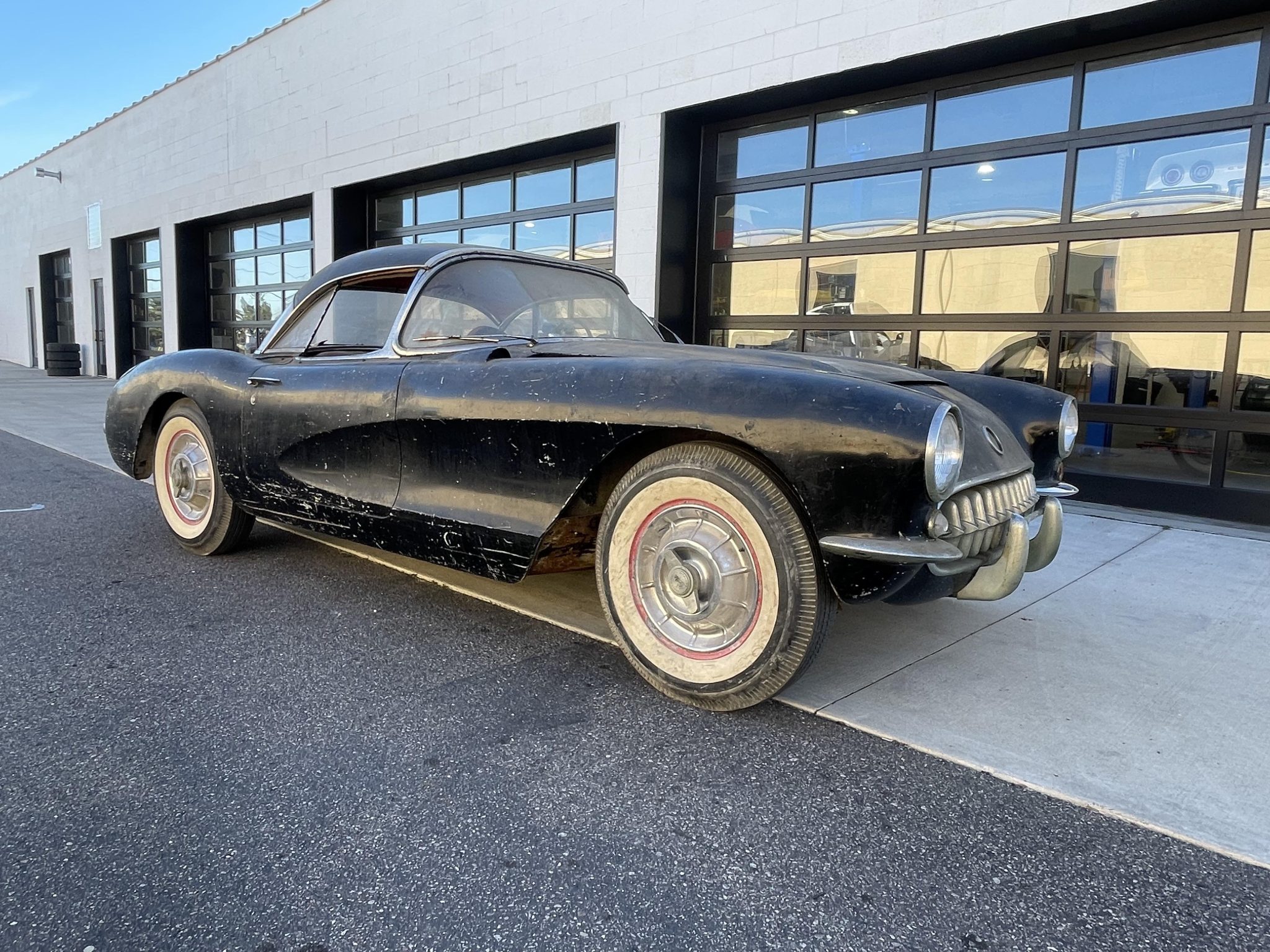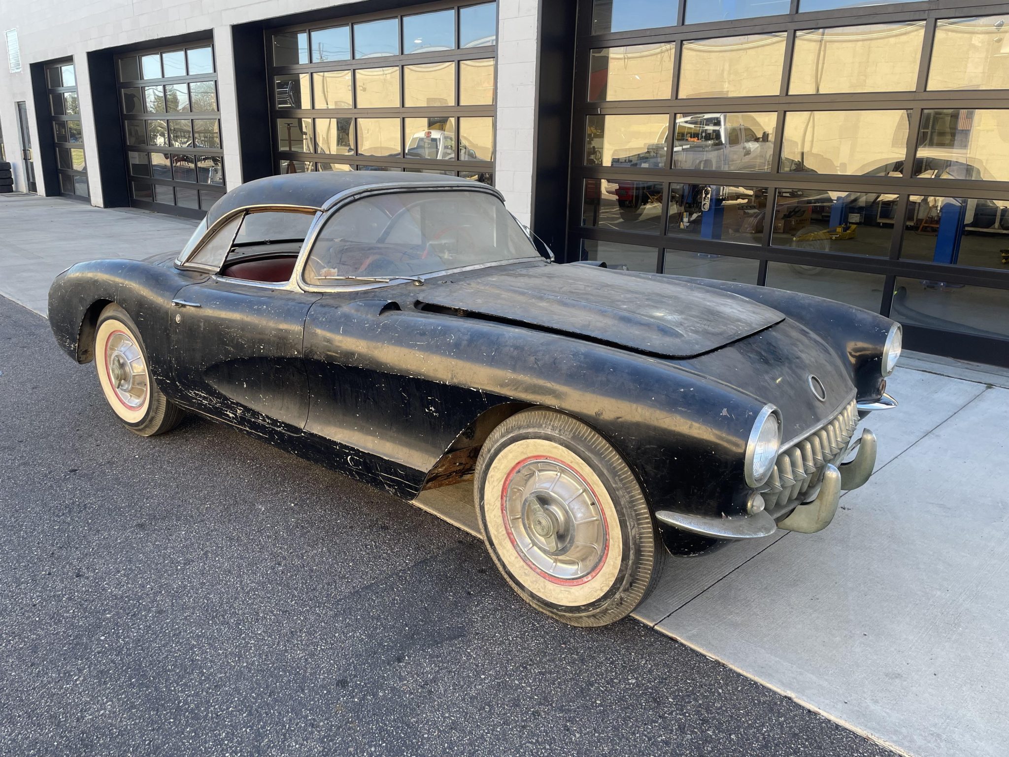 Red 15″ steel wheels with missing paint wear polished covers with faux knock-off spinners, and they are wrapped in 6.70-15″ BFGoordrich Silvertown whitewall tires. The car came equipped from the factory with an independent front suspension and semi-elliptical rear leaf springs. Braking is handled by drums at each corner.