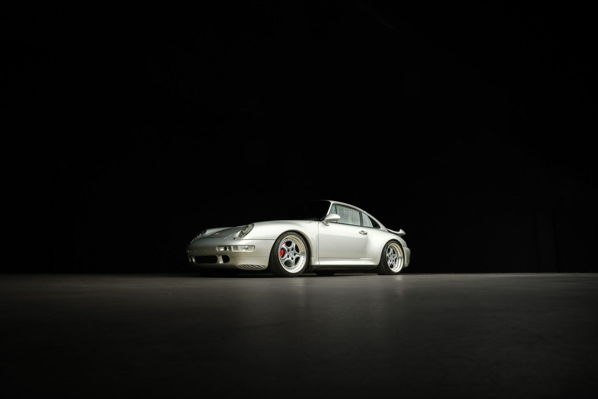 The 18″ multi-piece wheels are mounted with Pirelli P Zero tires. The car features an Automatic Brake Differential (ABD), and the 993 was the first 911 to feature multi-link rear suspension. Braking is provided by Porsche-branded four-piston calipers over cross-drilled rotors. KW suspension components have been added under current ownership.