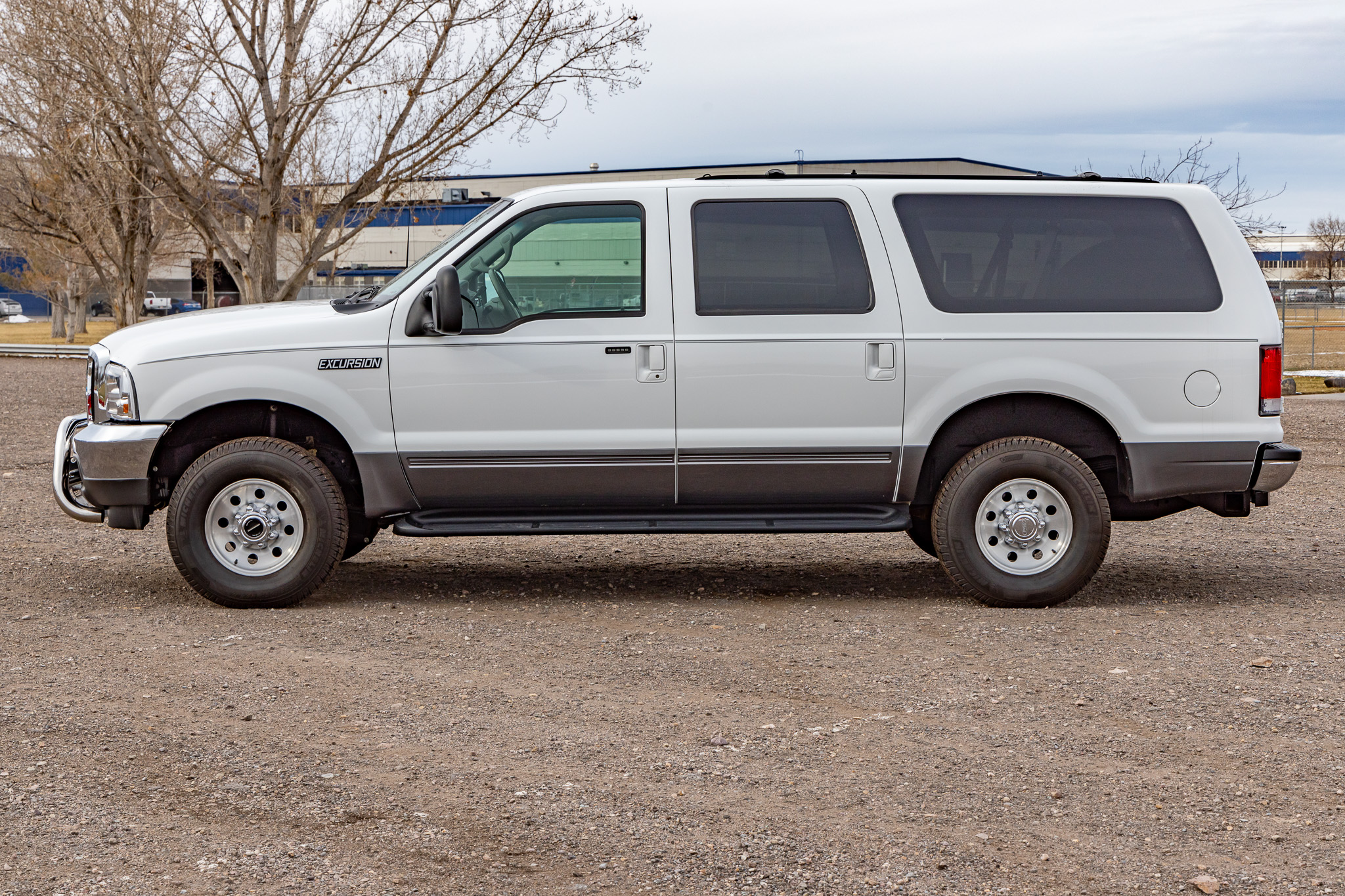 Polished 16″ eight-hole alloy wheels are mounted with 265/75 Michelin Defender LTX tires. Braking is handled by four-wheel ventilated discs, and the truck is equipped with manually locking front hubs.
