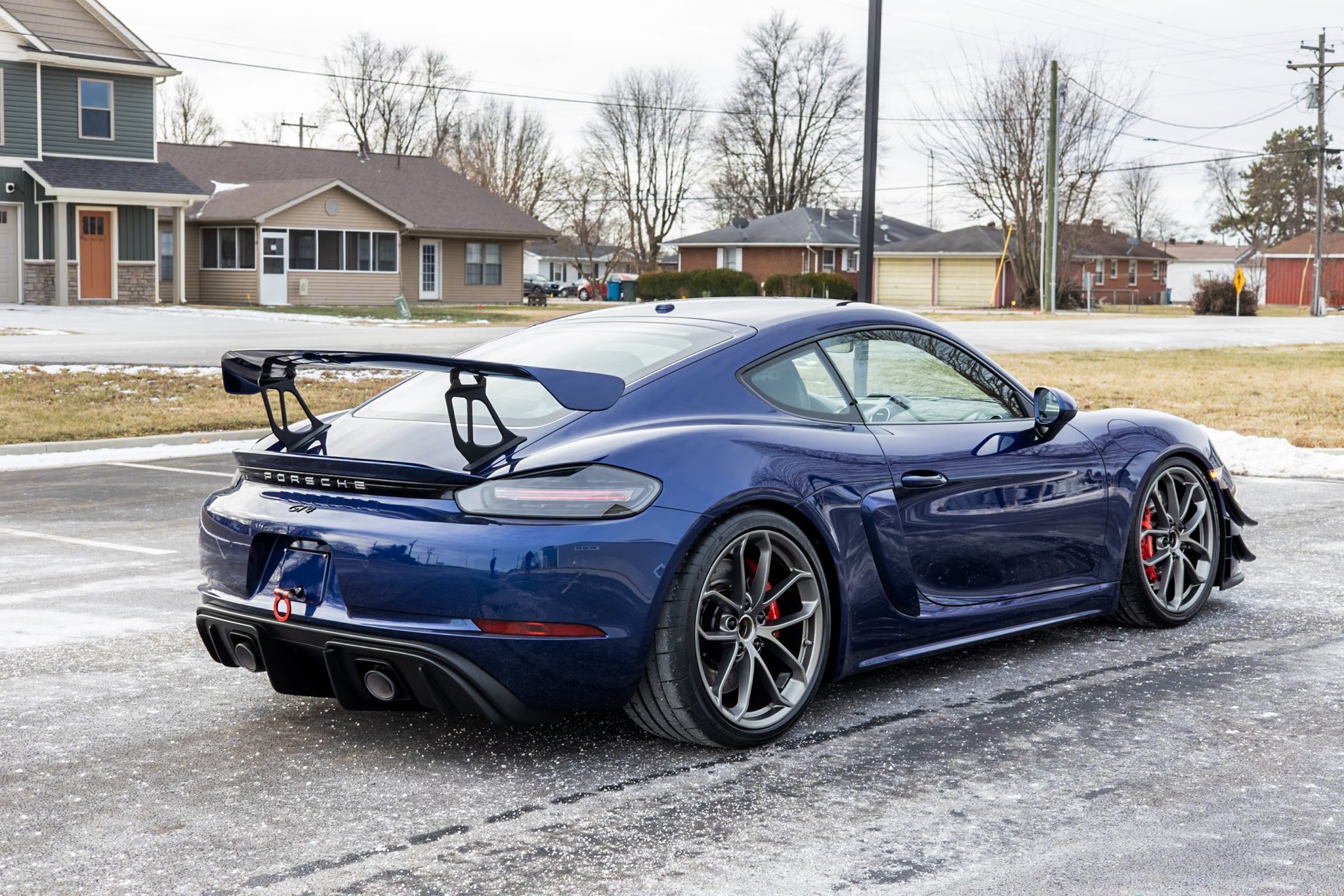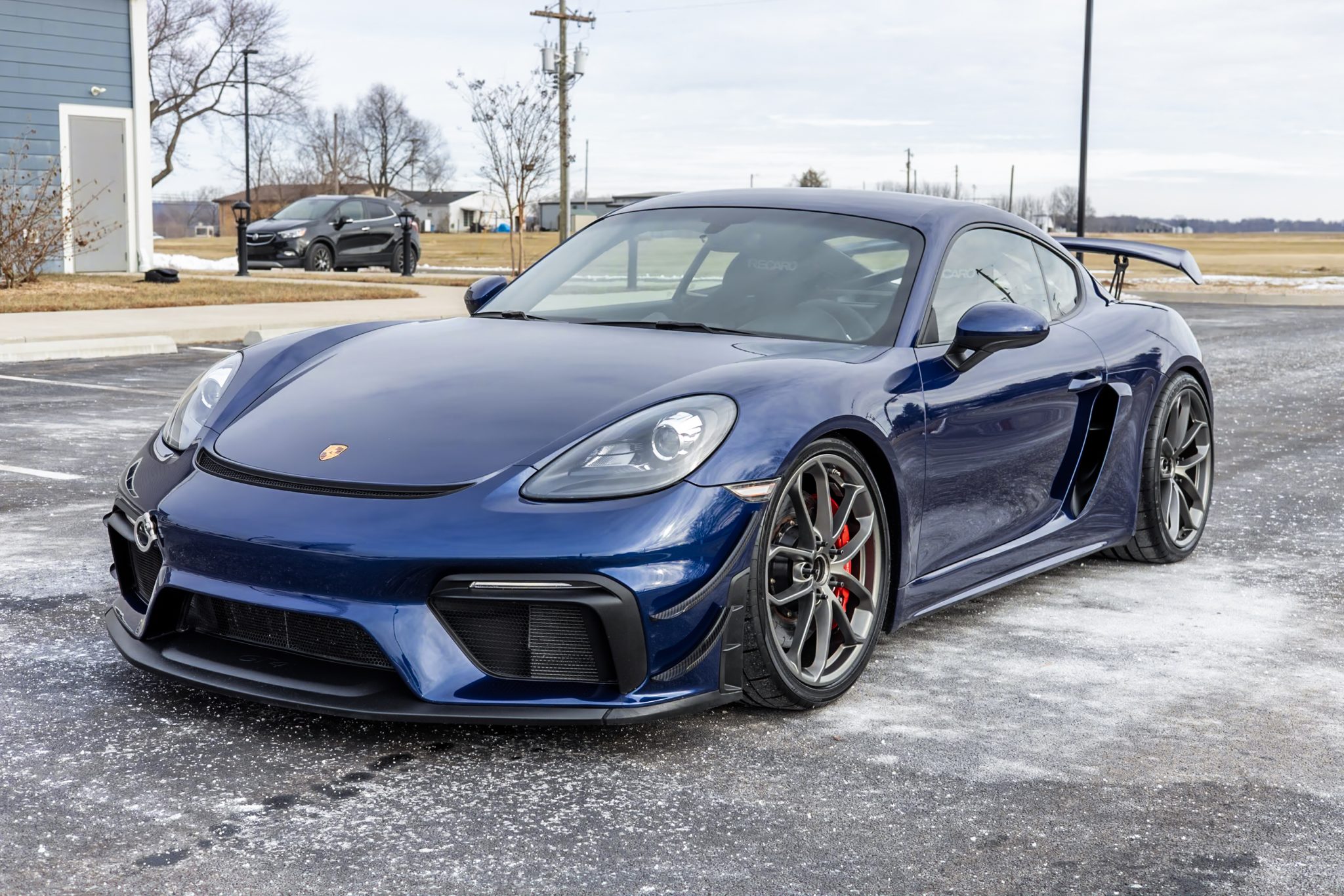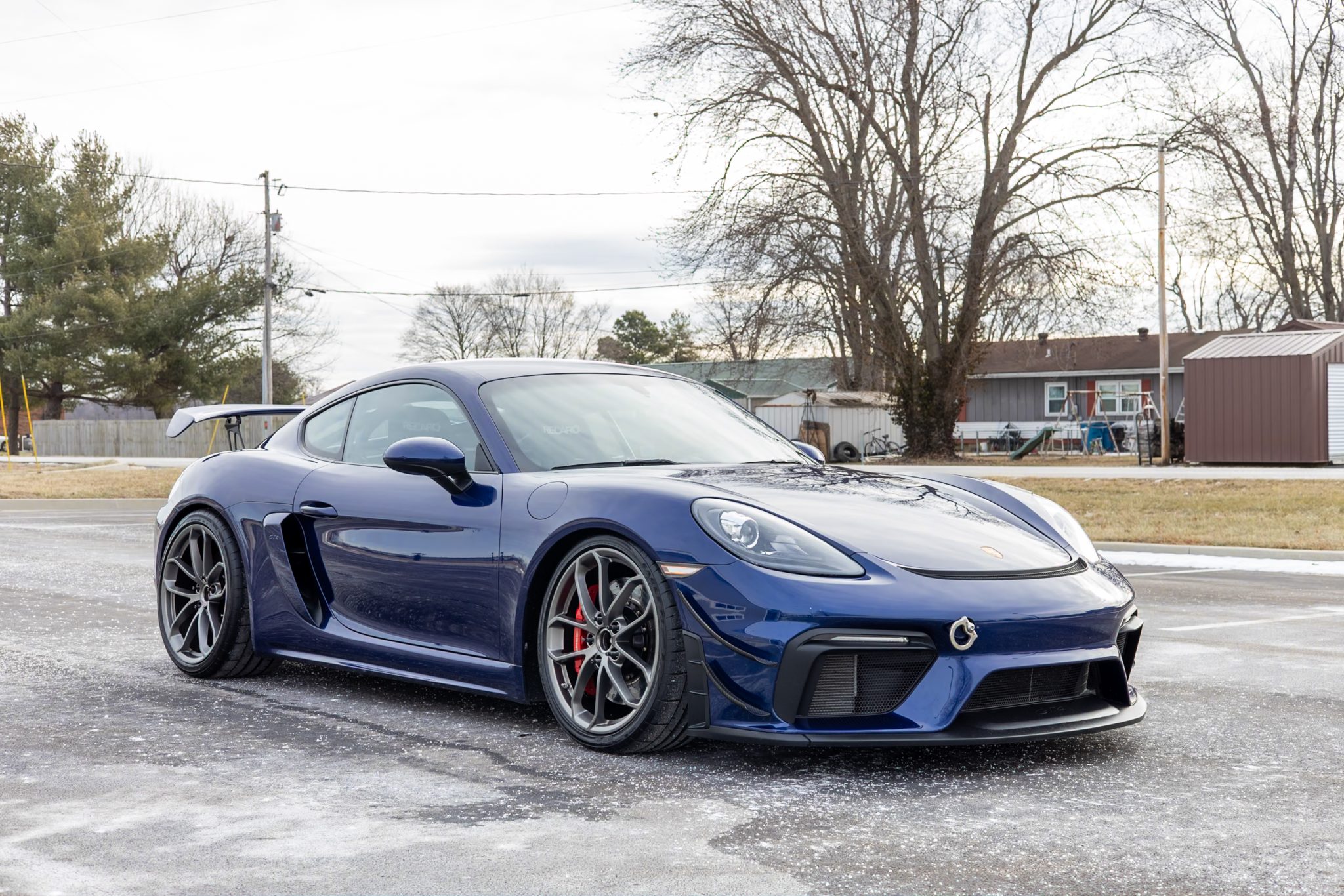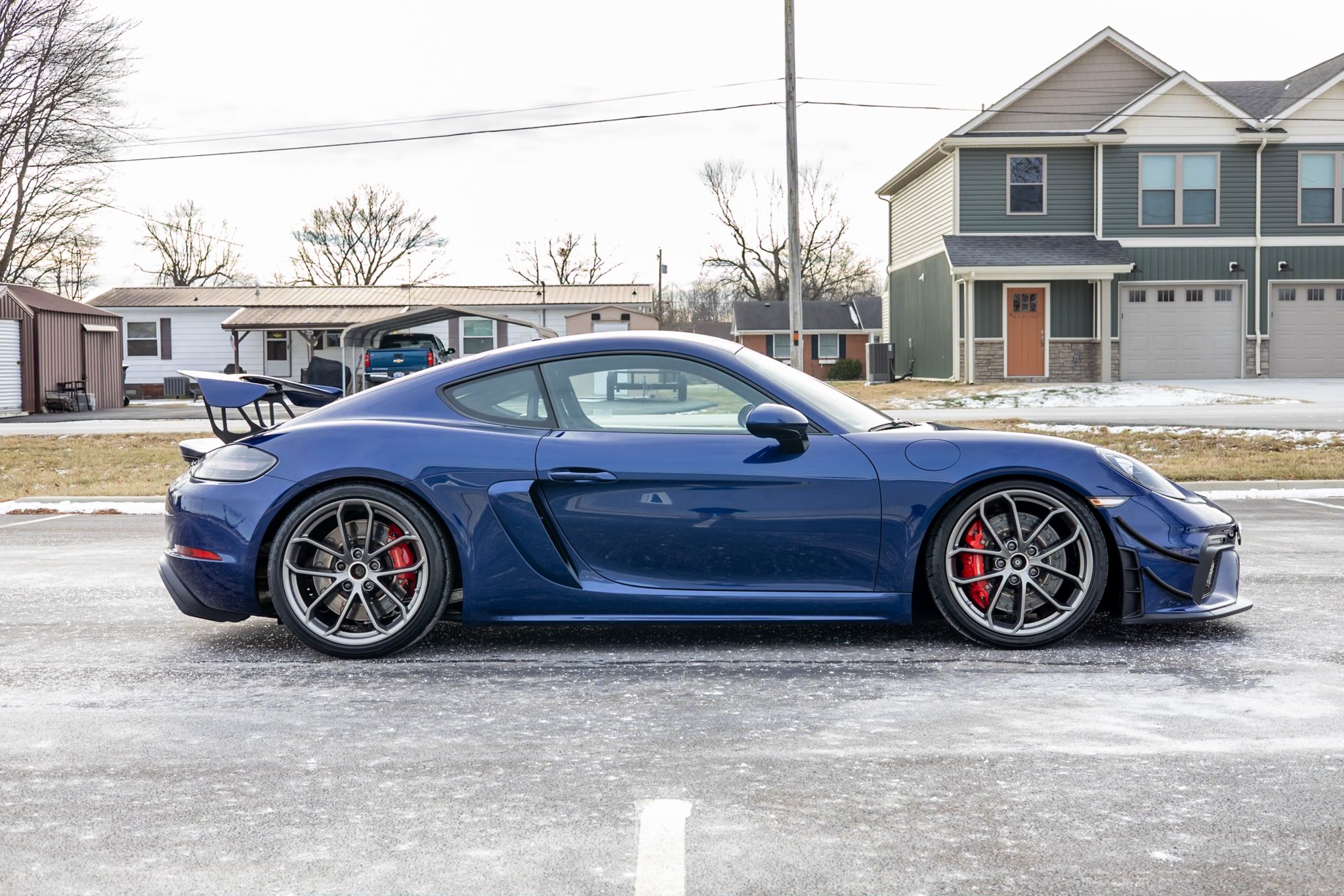 The 20″ Cayman GT4 alloy wheels are mounted with Goodyear Eagle F1 Supercar 3 tires that measure 245/35 up front and 295/30 at the rear. Stopping power is provided by red-finished calipers over AP Racing rotors. The car is also equipped with Porsche Active Suspension Management (PASM) and Friction-One carbon braided brake lines. A brake fluid flush was reportedly performed in preparation for the sale.