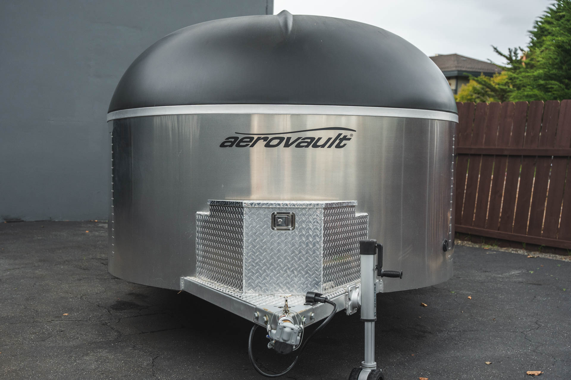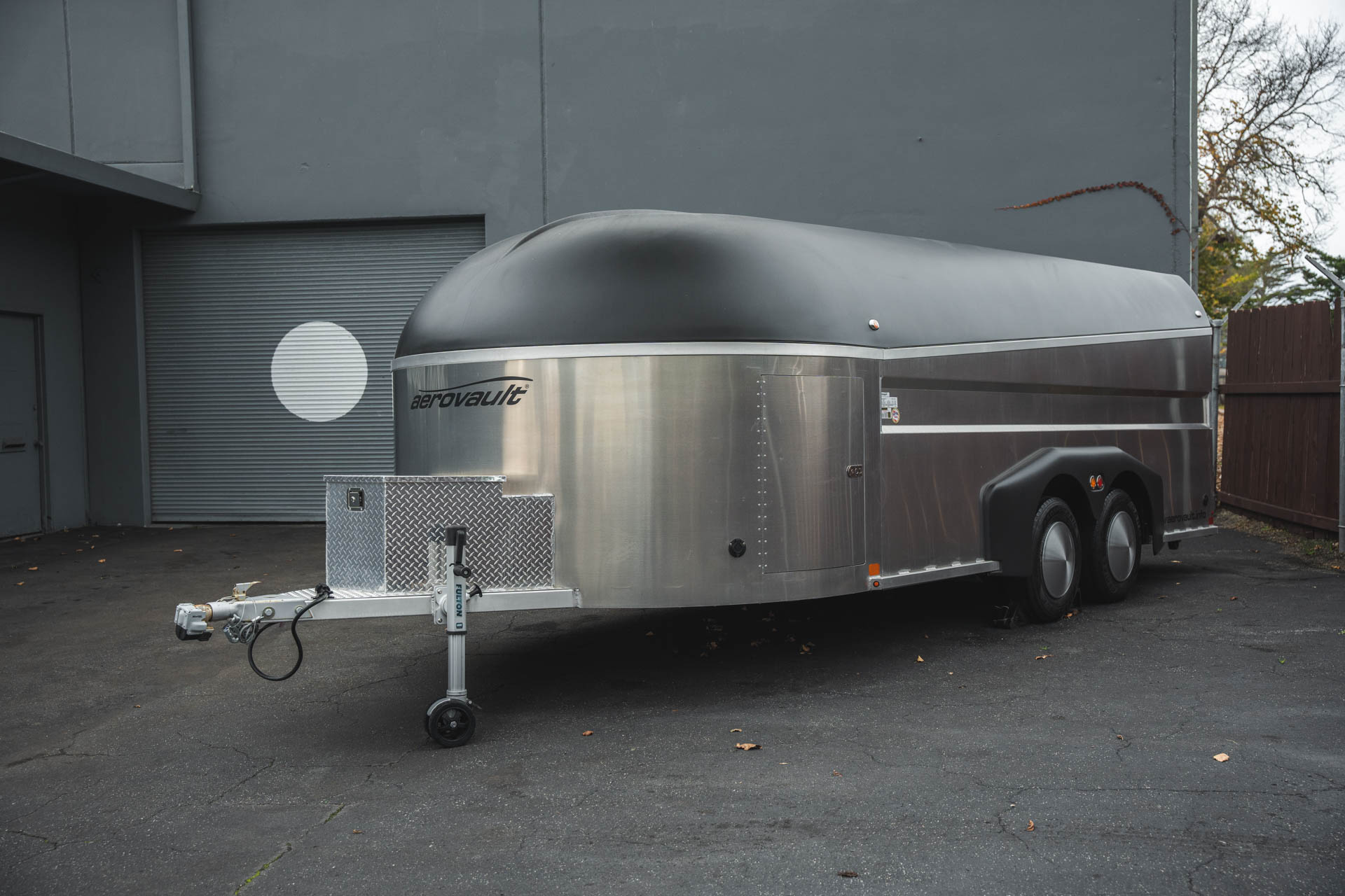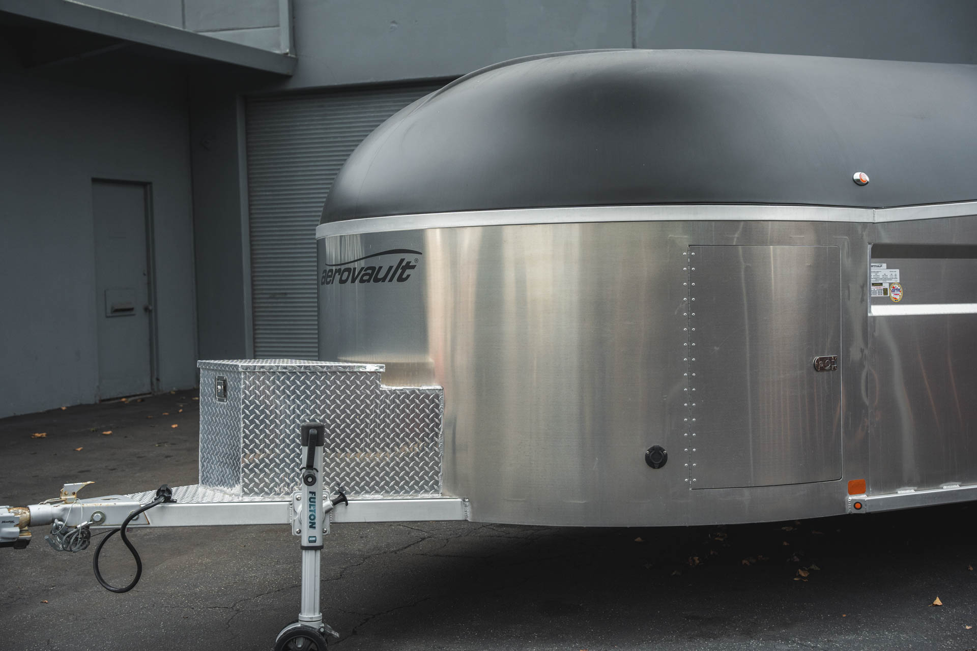 Steel 15″ wheels wear polished covers and are mounted with 205/75 Carlisle Radial Trail trailer tires, while a matching spare is stowed inside the trailer. Stopping power is from four-wheel self-adjusting electric drum brakes, and the trailer rides on twin Dexter Torsion Flex 3,500-lb. axles. A Fulton rolling tongue jack is mounted on the left frame rail.