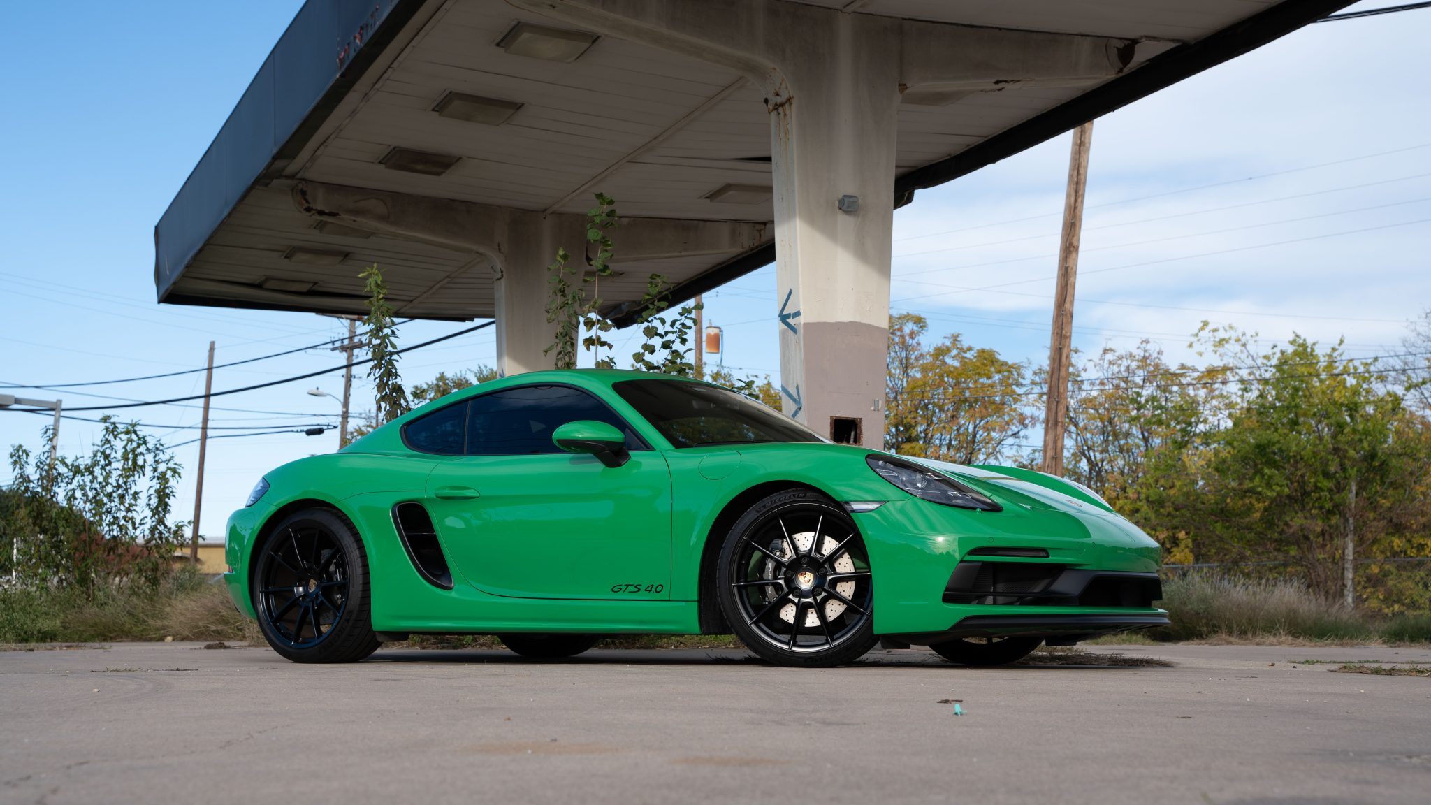 Satin black-finished 20″ 718 Sport wheels are mounted with 235/35 front and 265/35 rear Michelin Pilot Sport 4 S tires. The GTS 4.0’s suspension is 20mm lower than the contemporary model and utilizes Porsche Active Suspension Management. Braking is handled by Porsche-branded high gloss black calipers and cross-drilled rotors at all four corners.