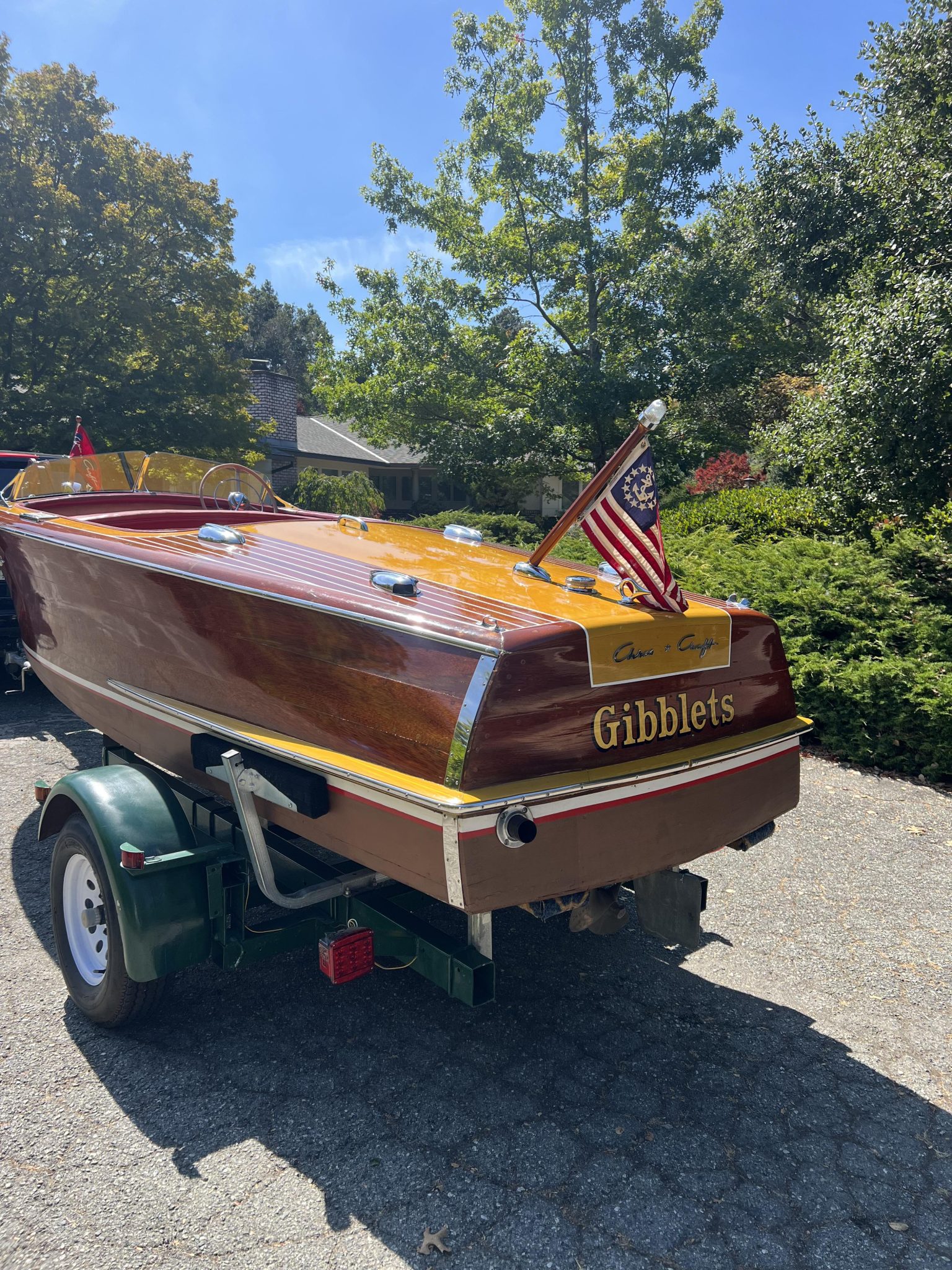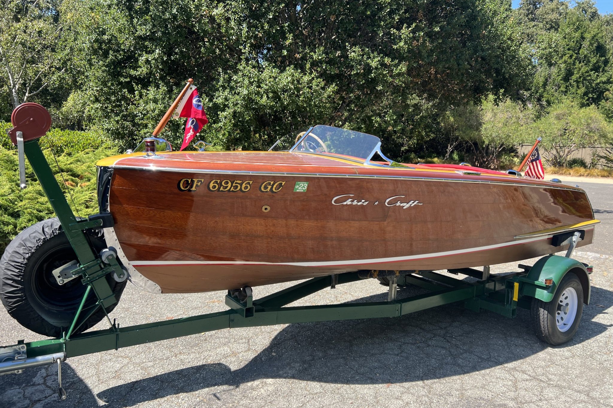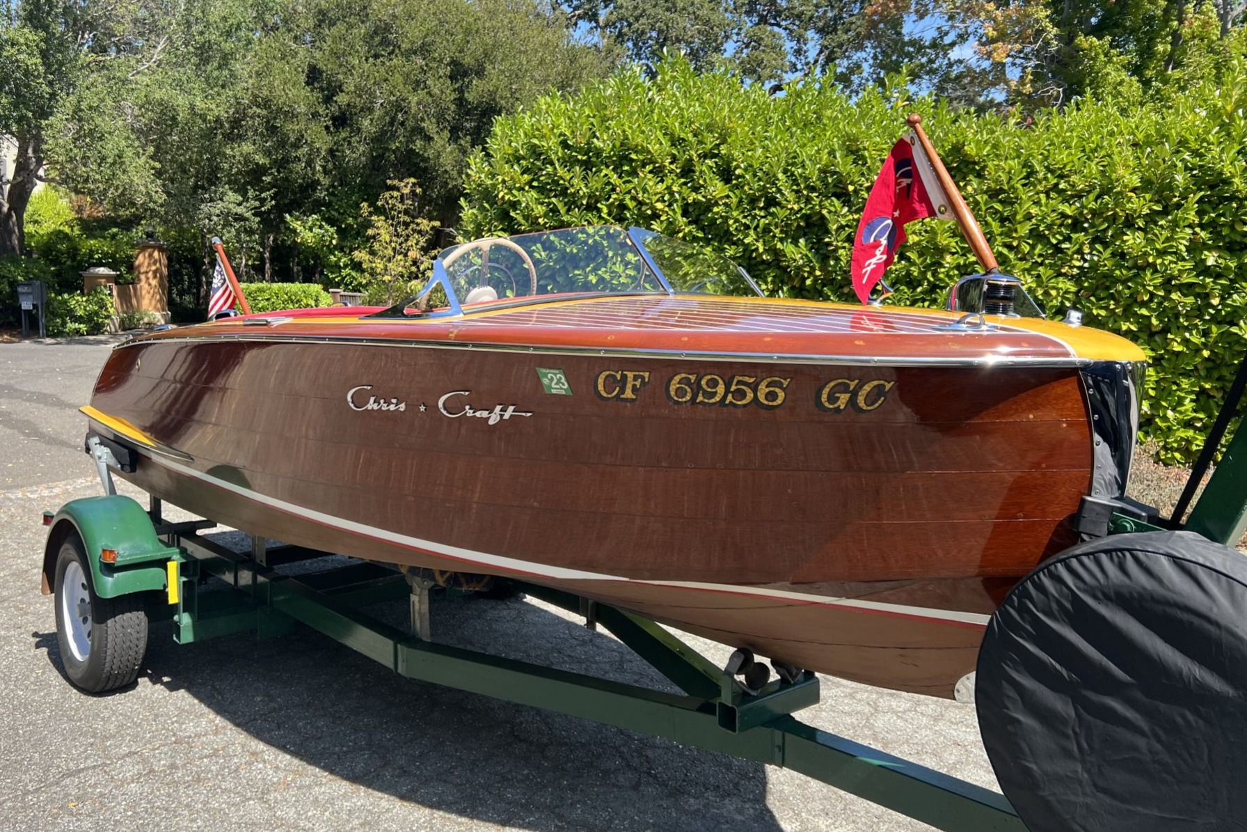 A banjo-style steering wheel fronts instrumentation consisting of a reverse-sweep tachometer, an oil pressure gauge, an ammeter, and a coolant temperature gauge. The cockpit is upholstered in red vinyl. An hourmeter is not equipped, therefore total hours are unknown.