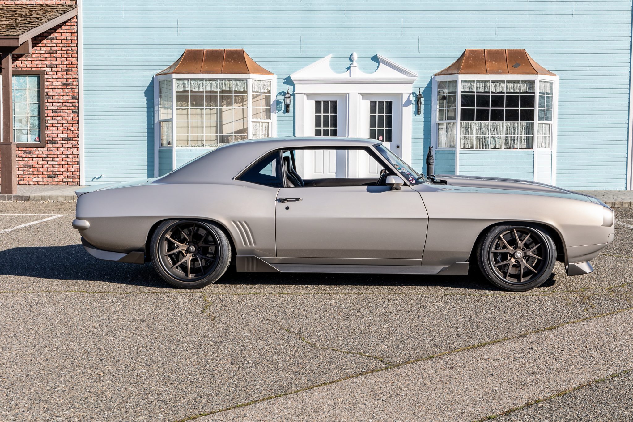 The Roadster Shop Spec chassis includes coilover front suspension, four-link coilover rear suspension, power steering, and Wildwood disc brakes with six-piston calipers all around. The wheels are from Billet Specialties and measure 18×10” in front and 19×12” out back. Tires are 275/35 front and 325/30 rear Nitto Invos.