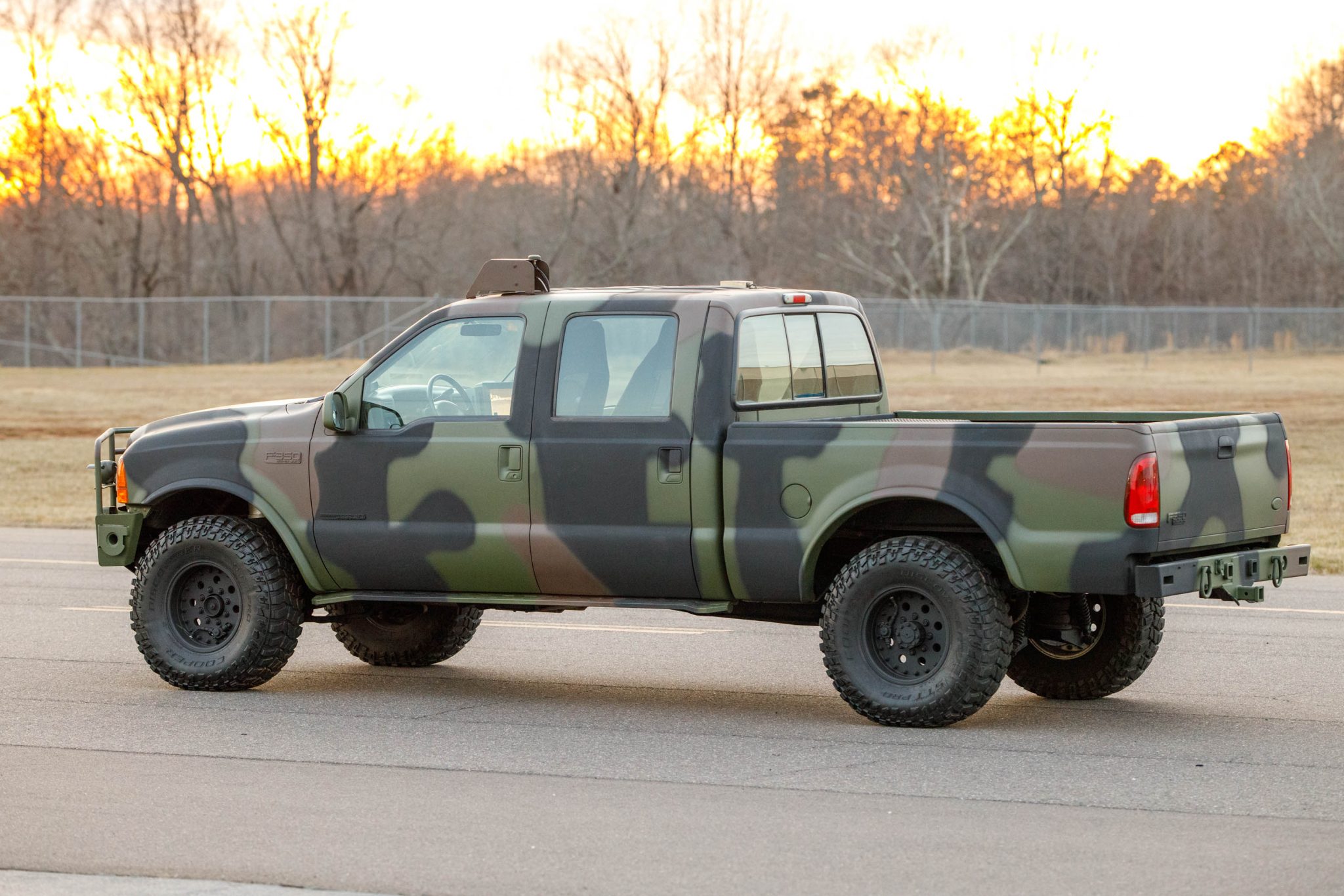 Black-finished 17″ beadlock-capable wheels are mounted with Cooper Discoverer STT Pro tires. The heavy-duty suspension is fitted with manually controlled air springs and allows for 30″ of water-fording capability. Stopping power is provided by four-wheel discs with ABS. The central tire inflation system has been disabled and the seller notes a front air spring leak was repaired in preparation for the sale.