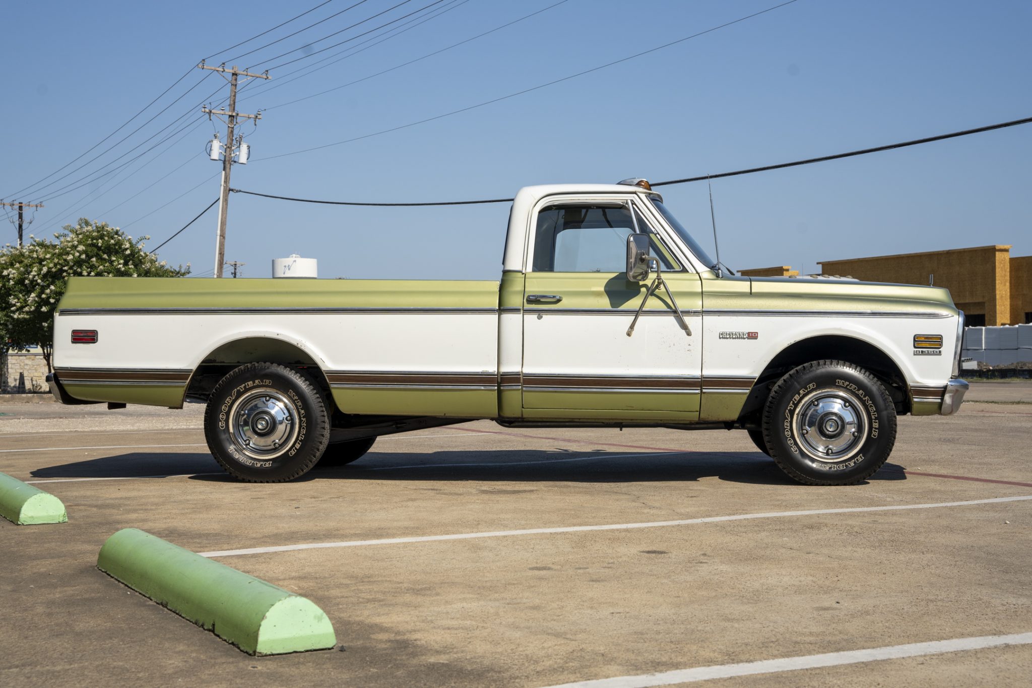The 15″ steel wheels feature chrome covers and are mounted with 235/75 Goodyear Wrangler Radial tires that were mounted by the selling dealer. The truck is equipped with power steering, and braking is provided by power-assisted front discs and rear drums. The rear drum brakes were adjusted, the wheel cylinders were replaced, and the brake fluid was serviced under current ownership, at which time the shocks were replaced.