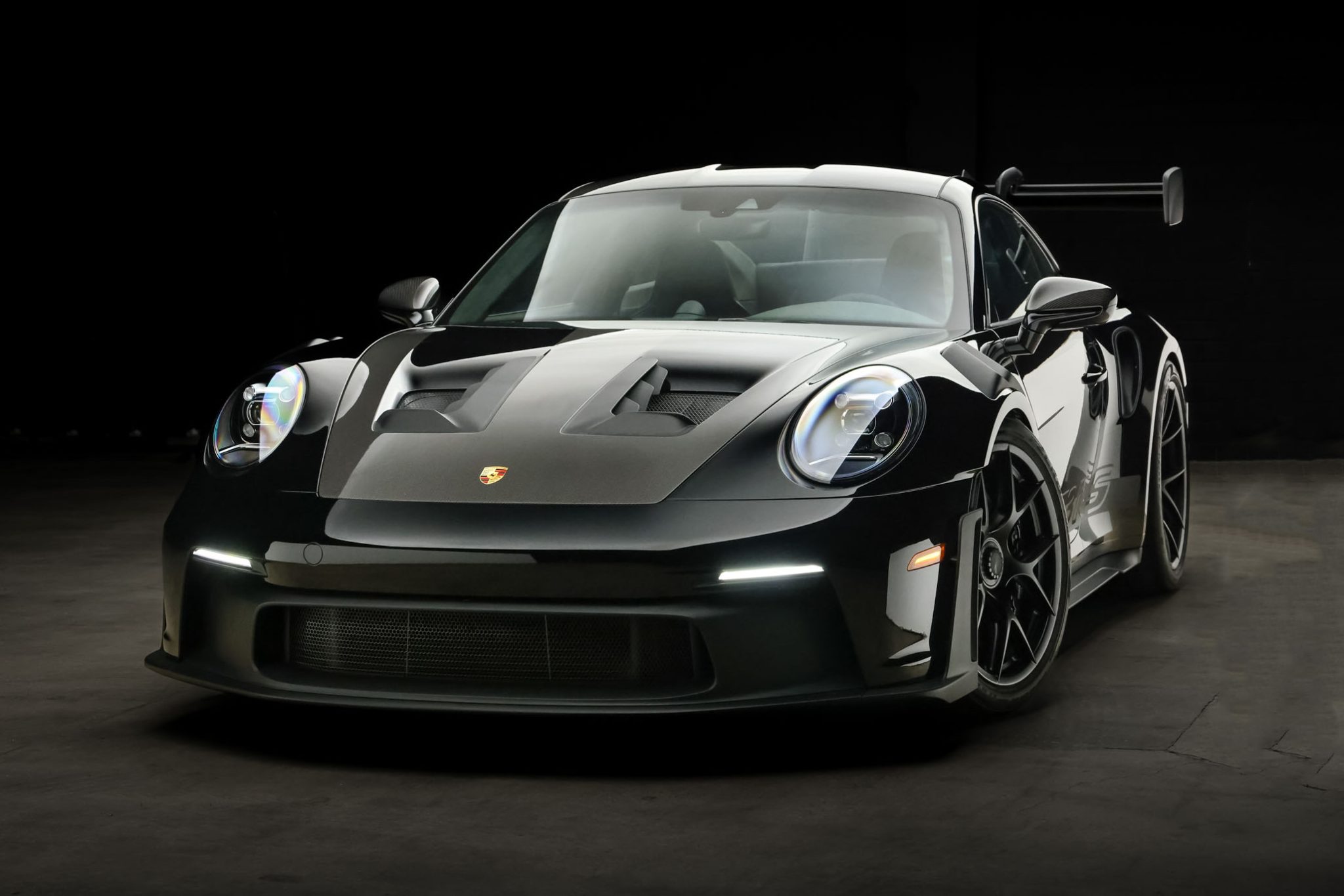 Forged lightweight magnesium 20″ and 21″ GT3 center-lock wheels are mounted with 275/35 front and 335/30 rear Pirelli P Zero Corsa tires. Stopping power is provided by black-finished Porsche-branded calipers over dimpled and ventilated discs at each corner. The car is equipped with rear-axle steering, a front-axle lift system, and carbon-fiber front and rear anti-roll bars and coupling rods. A brake fluid flush was performed in January 2024.