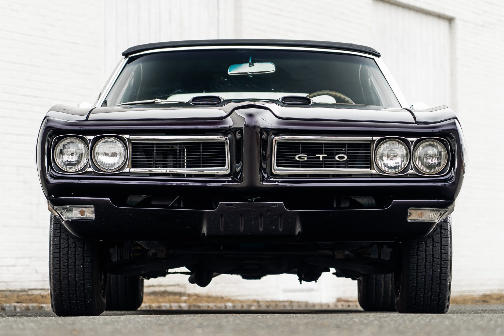 Chrome 15″ Cragar wheels are mounted with staggered-width BFGoodrich Radial T/A tires. Braking is provided by power-assisted front discs and rear drums. The car is equipped with power steering, aftermarket rear control arms, and KYB front shocks.