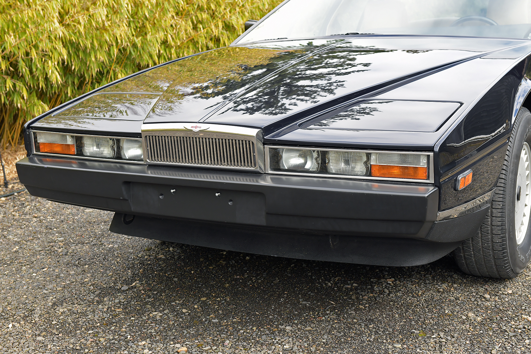 Silver-finished 15″ alloy wheels wear Lagonda-branded centers and are mounted with older 235/70 Goodyear Eagle GT+4 tires, while a matching spare wheel with an Avon tire is stored in the trunk compartment. The car rides on a four-wheel independent suspension, and stopping power is provided by four-wheel ventilated disc brakes, the rear of which are mounted inboard of the hubs. The upper and lower ball joints, rear brake calipers, and brake hoses are said to have been replaced during the 2010s.