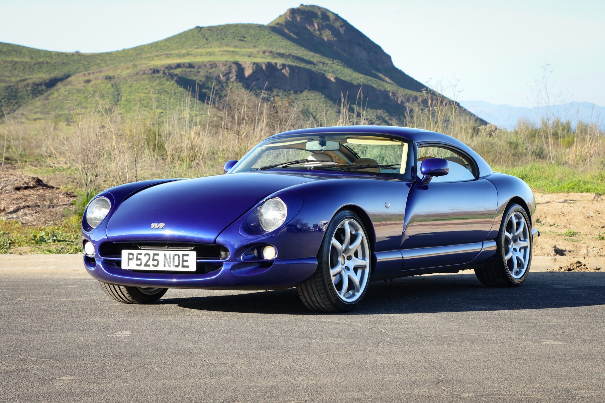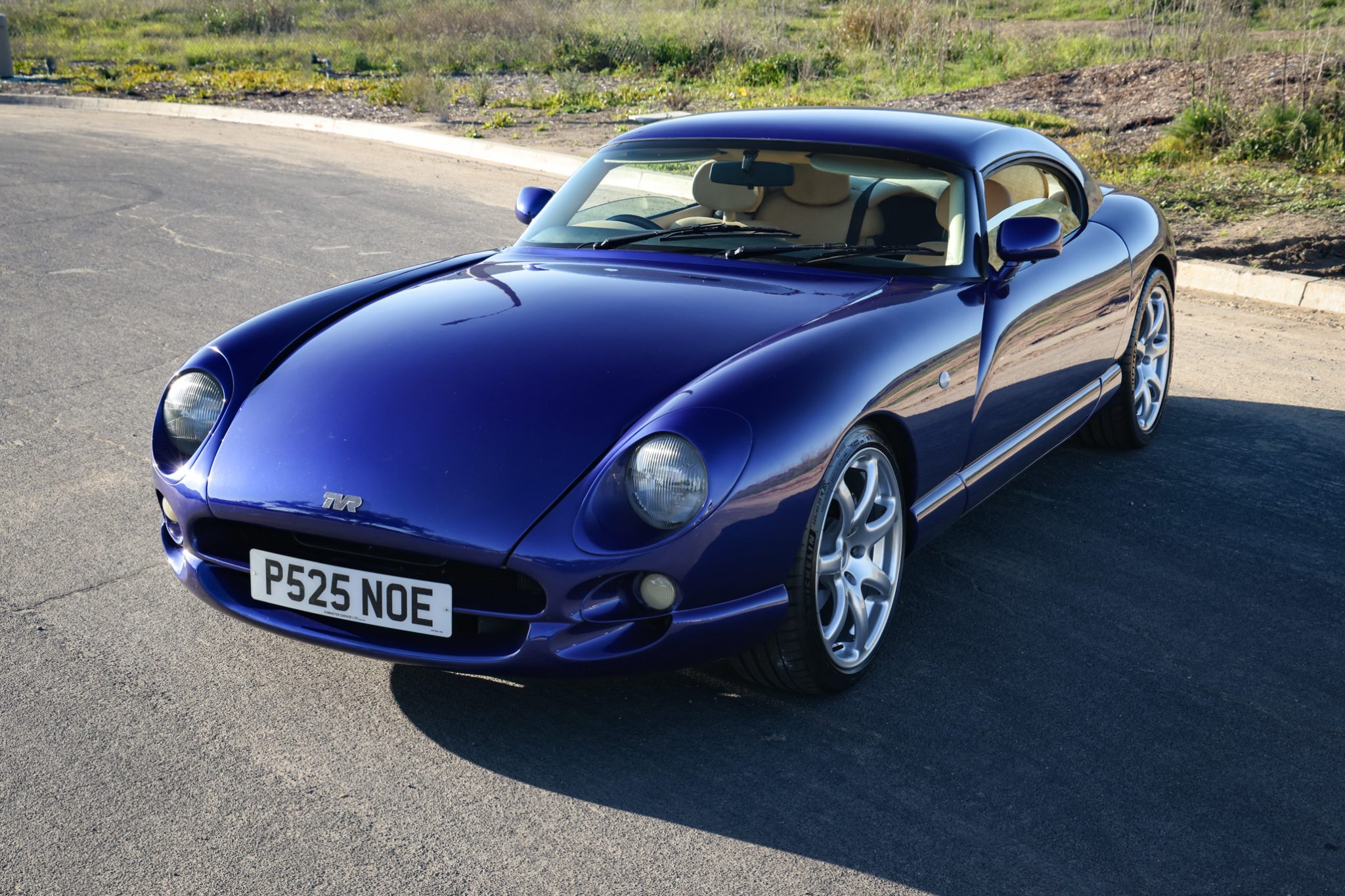 Silver-finished 18″ TVR Spider wheels are mounted with 225/35 front and 255/35 rear Michelin Pilot Sport 4 tires. The car rides on a four-wheel independent suspension and braking is handled by AP Racing calipers over a disc at each corner. The Cerbera was not offered with an anti-lock braking system or traction control.