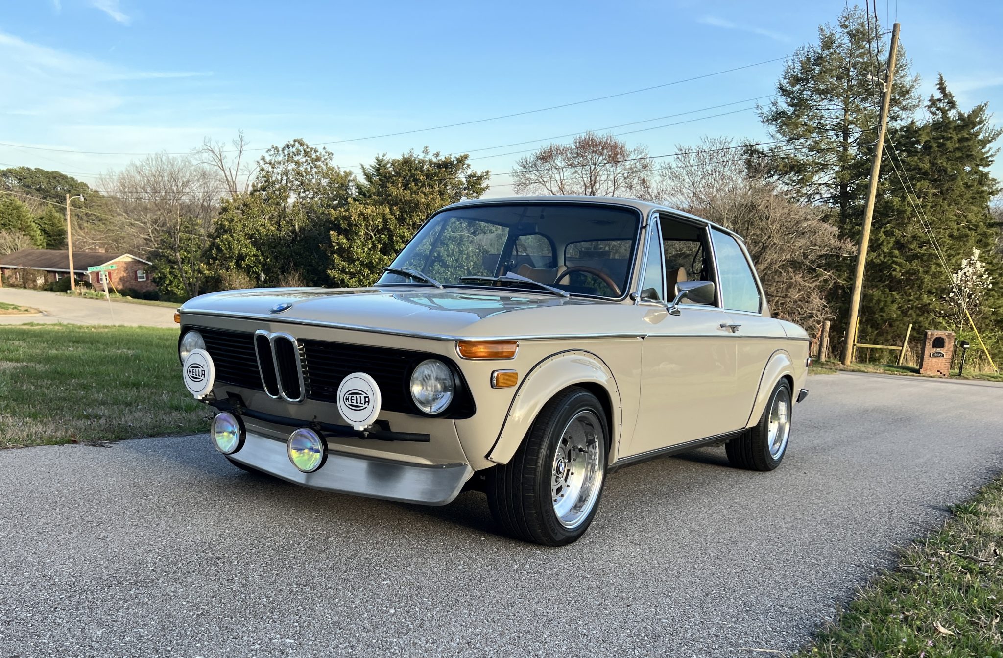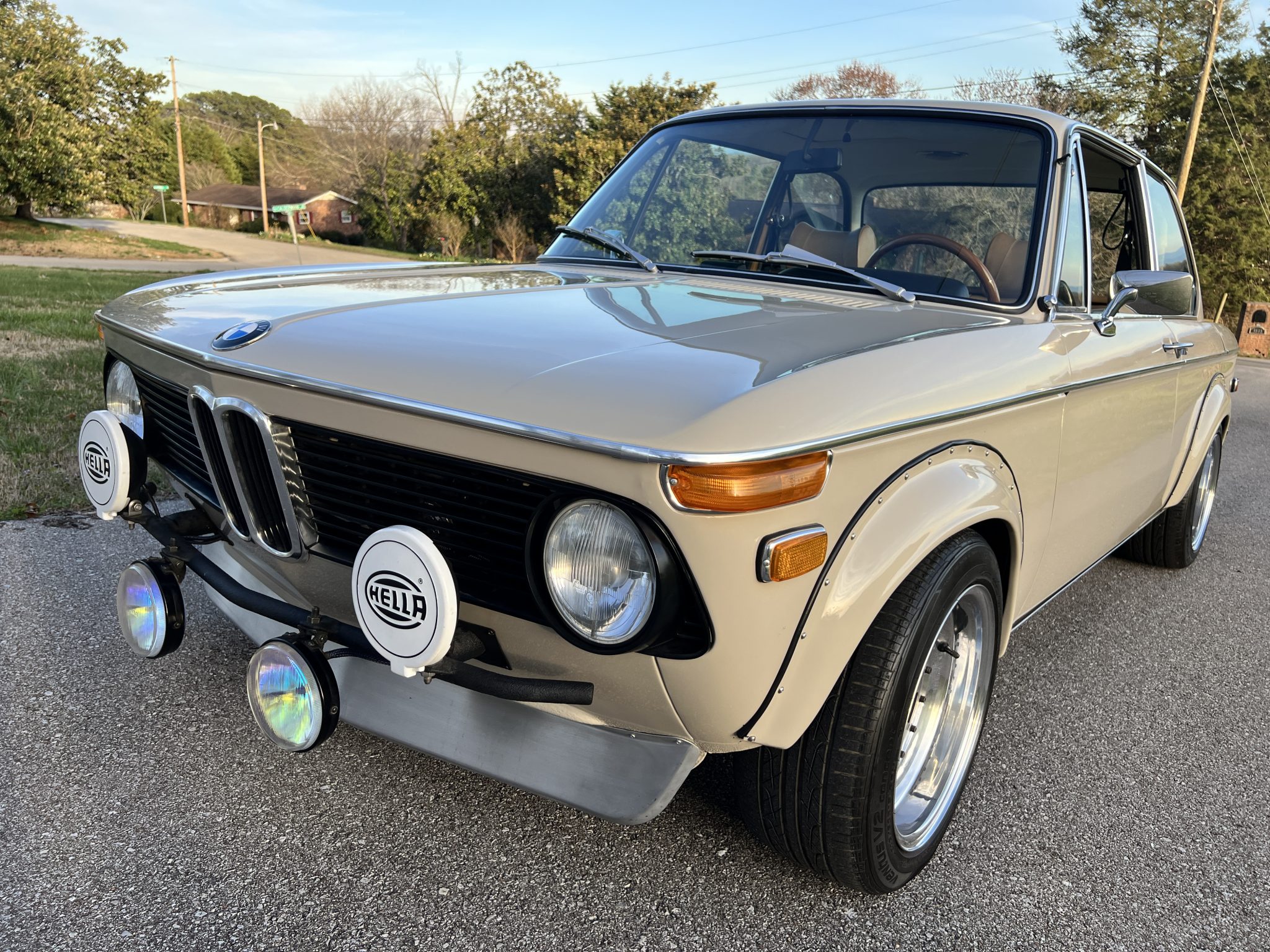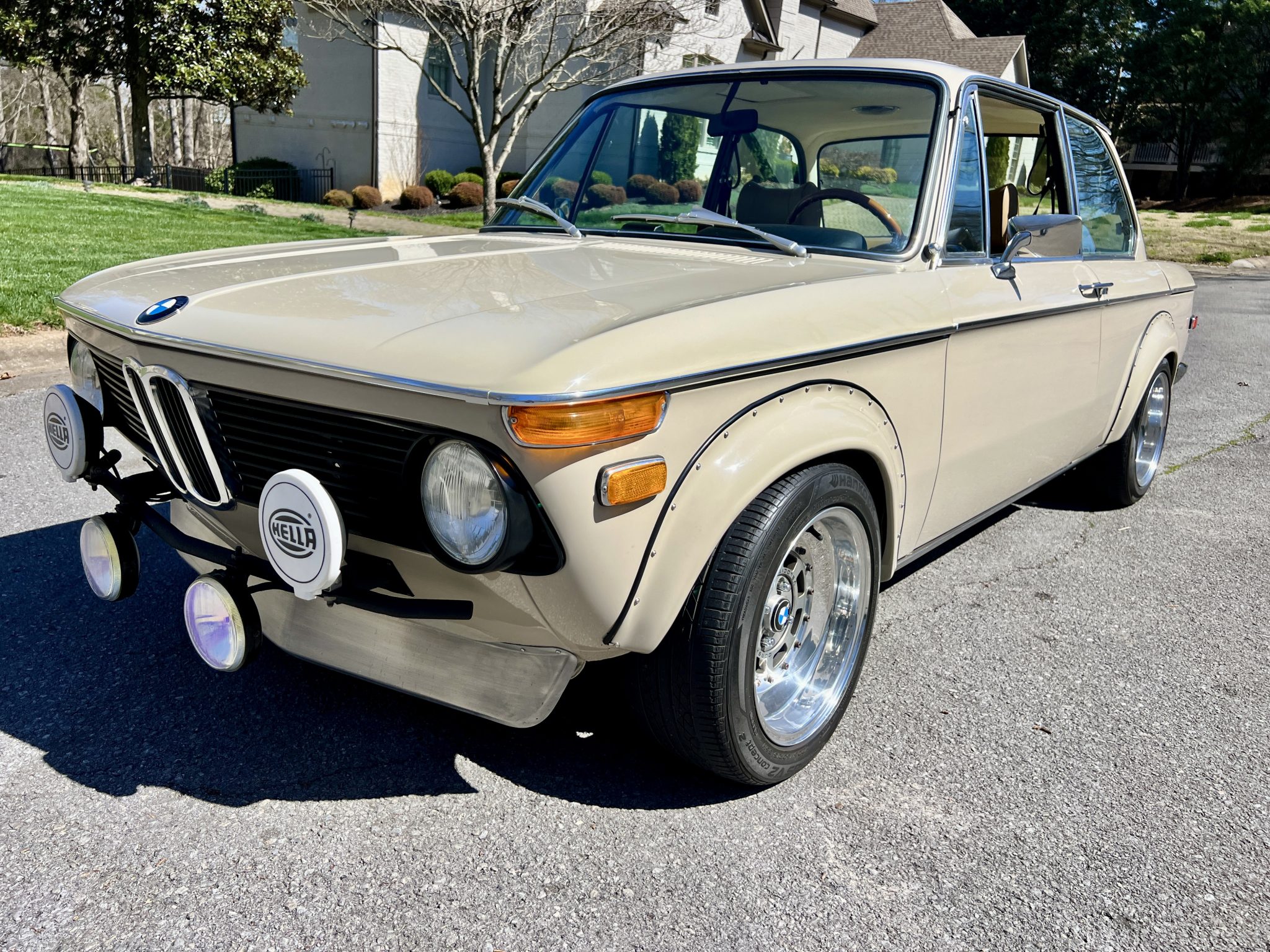 The 15″ wheels were custom-fabricated by Corsa Velocita and are mounted with 205/50 Hankook Ventus V2 Concept2 tires. A non-matching Corsa Velocita spare wheel mounted with a Hankook tire resides in the trunk. Suspension modifications installed under current ownership include Ireland Engineering sway bars, Ground Control front coil-over shocks, and Bilstein rear shocks paired with Ground Control springs. Braking is handled by power-assisted front discs and rear drums, and the brake fluid was flushed in October 2023.