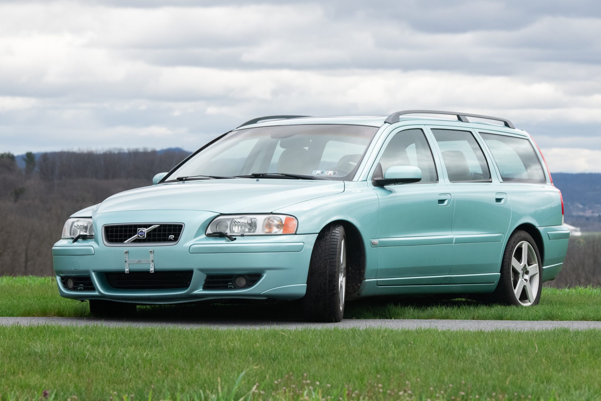 The 17″ Pegasus wheels were mounted with 235/45 Continental ExtremeContact tires under current ownership. The V70R was factory equipped with a Four-C electronically adjustable suspension, Dynamic Stability Traction Control (DSTC), and R-branded four-piston Brembo brake calipers. The front and rear strut assembles were reportedly replaced in 2019, at which time 1″ IPD lowering springs were installed.