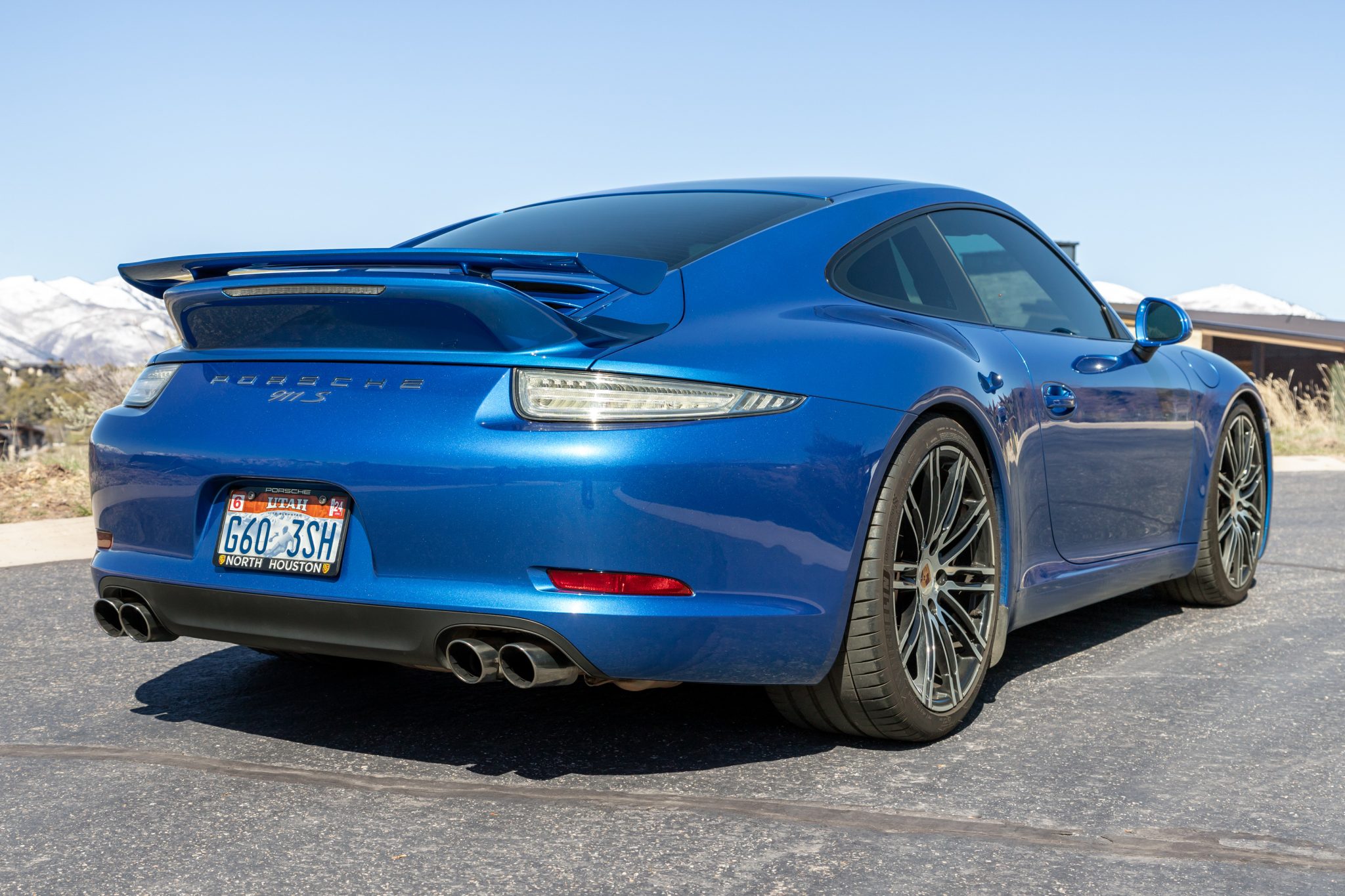 The 20″ 911 Turbo alloy wheels are mounted with 245/35 front and 305/30 rear Michelin Pilot Sport 4s tires. Braking is handled by red-painted Porsche-branded calipers over cross-drilled and ventilated discs, and the car is equipped with PASM sport suspension. A brake fluid flush was performed in June 2023.