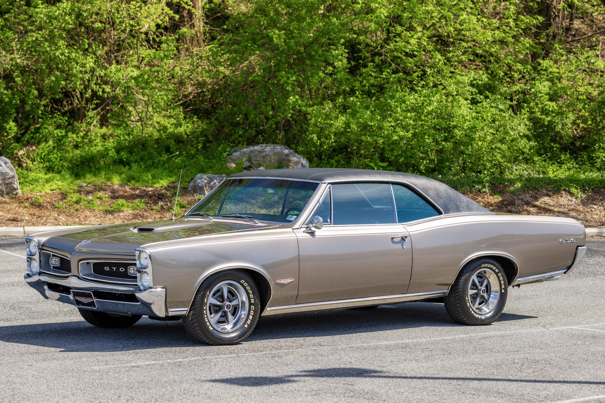 The Rally II 15″ wheels were refinished during the refurbishment and feature chrome trim rings and 245/60 Cooper Cobra Radial G/T tires. The car is equipped with power steering, and stopping is provided by four-wheel drum brakes.