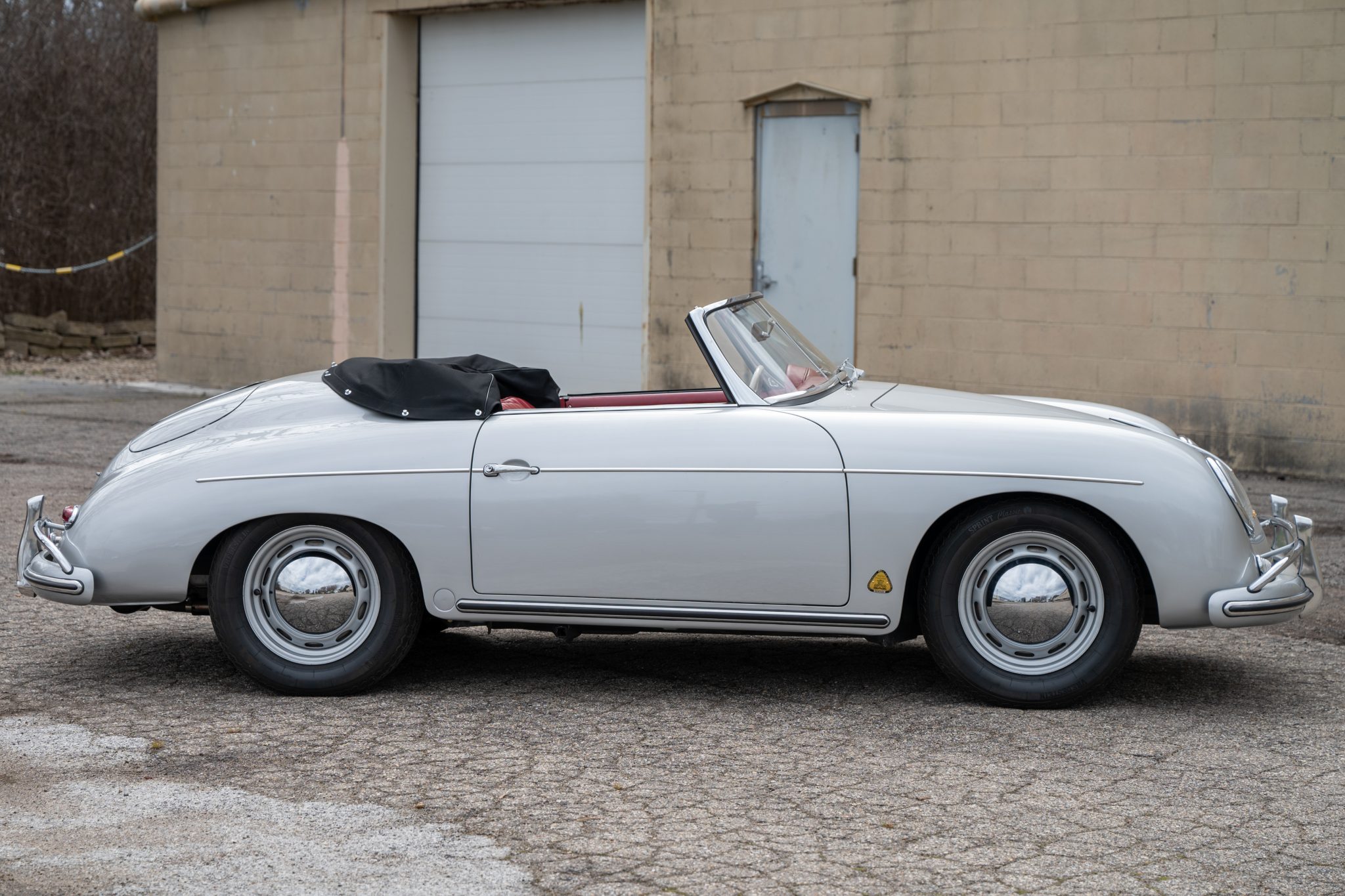 Silver-finished 15” steel wheels wear chrome baby moon hubcaps and are wrapped in 165-series Vredestein Sprint Classic tires, as is the matching spare stored in the front trunk compartment. The suspension and four-wheel drum brake system were overhauled in 2019 by Neil’s Restoration of Troy, Michigan.