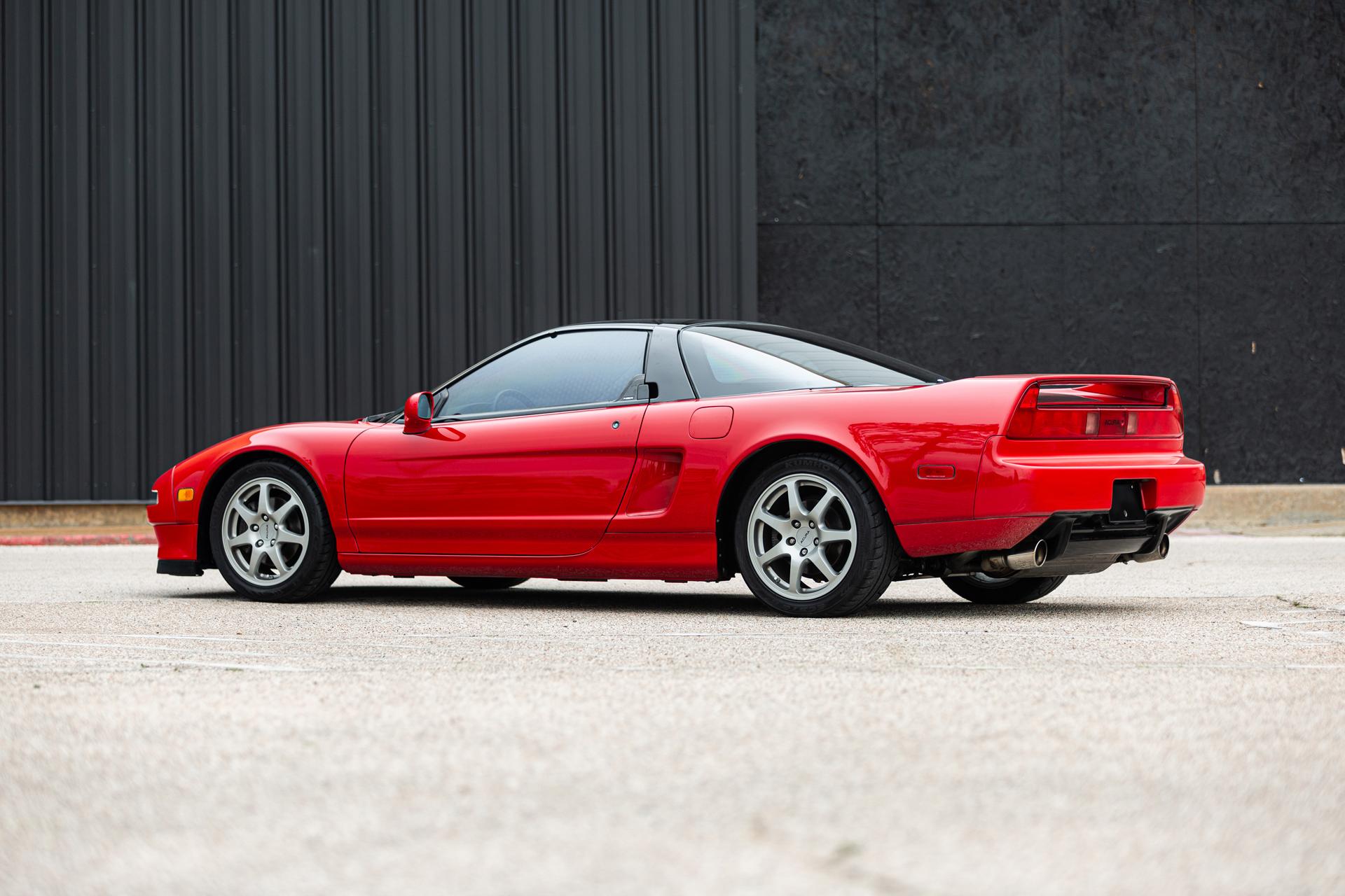 Staggered-diameter 16” and 17” seven-spoke aluminum wheels are said to have been sourced from a later-generation model, and they are mounted with Kumo Ectsa tires that have 2010 date codes. The car features a four-wheel double-wishbone suspension with front and rear stabilizer bars, and braking is handled by NSX-branded calipers over vented rotors at each corner.