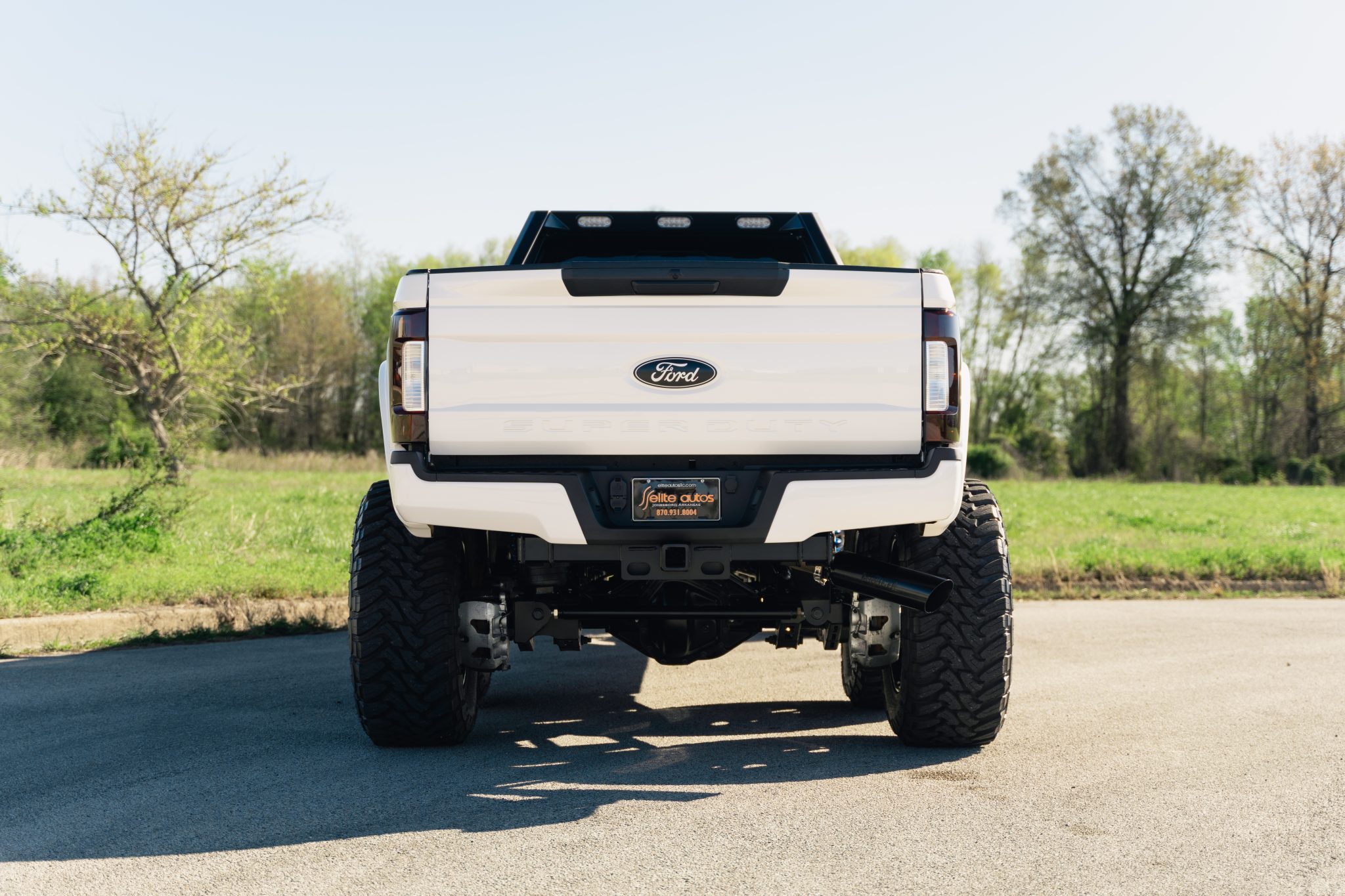 Black-finished 22″ Grid Off-Road forged wheels are mounted with 40×15.5″ Toyo Open Country M/T tires. The rig rides on an 8″ lifted suspension with King remote-reservoir shock absorbers as well as Firestone rear air springs.