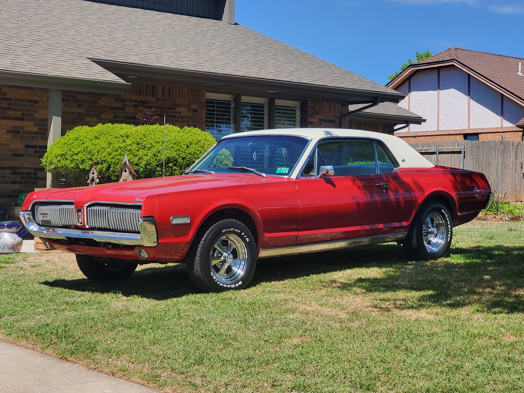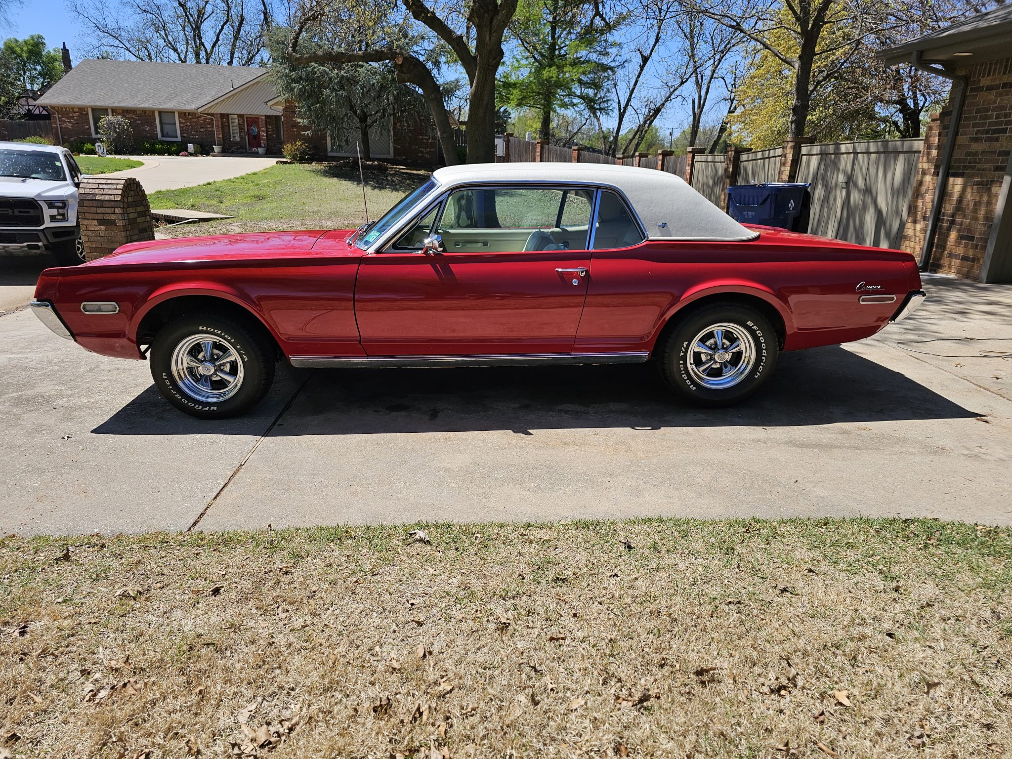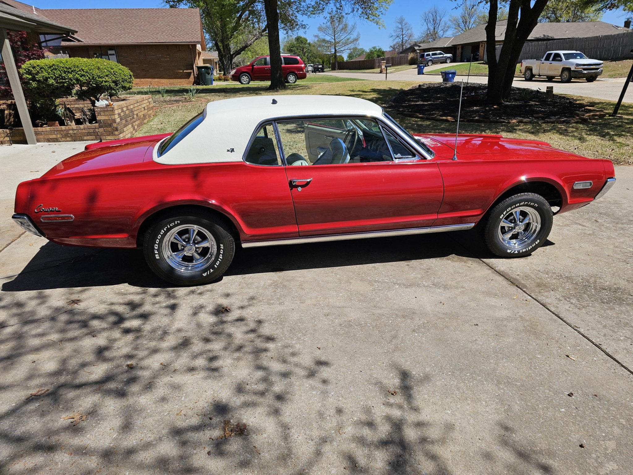 Chrome 14″ Cragar S/S wheels are mounted with 205/70 front and 225/70 rear BFGoodrich Radial T/A tires. Stopping is provided by front discs and rear drums. Noted service in 2022 included replacing the shocks, tires, and front and rear brakes.