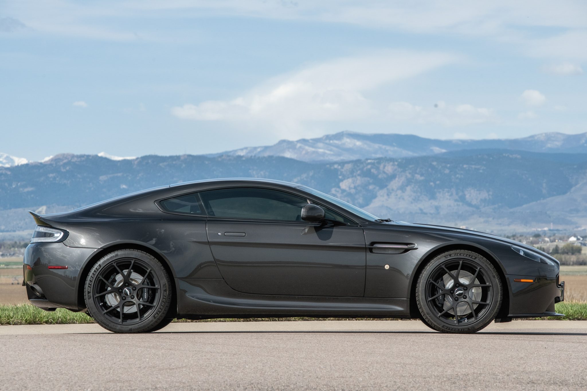 The 19″ BC Forged RZ05 wheels are mounted with Michelin Pilot Sport 4S tires measuring 235/40 up front and 275/35 at the rear. Braking is from black-finished Aston Martin-branded calipers over slotted rotors at all four corners. The brakes were serviced with replacement front rotors and pads in March 2023.