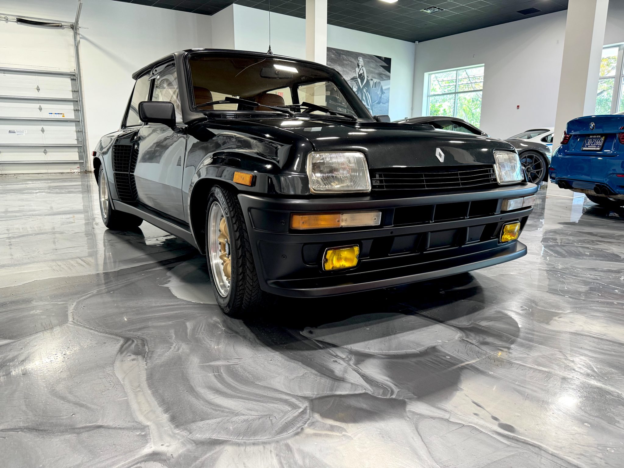 Multi-piece 15″ Panasport wheels have gold center sections and are mounted with 195/50 front and 285/40 rear Pirelli tires that show cracks in the sidewalls. The car rides on an independent double-wishbone suspension with torsion bars up front and a coil spring setup out back. Stopping power is provided by four-wheel disc brakes, which are said to have been overhauled in 2023. Corrosion is visible on the wheel rim fasteners.