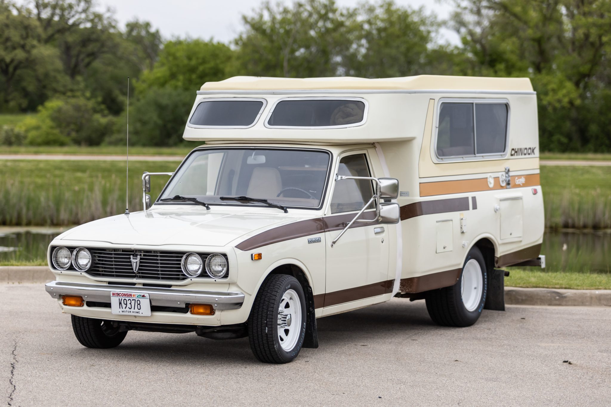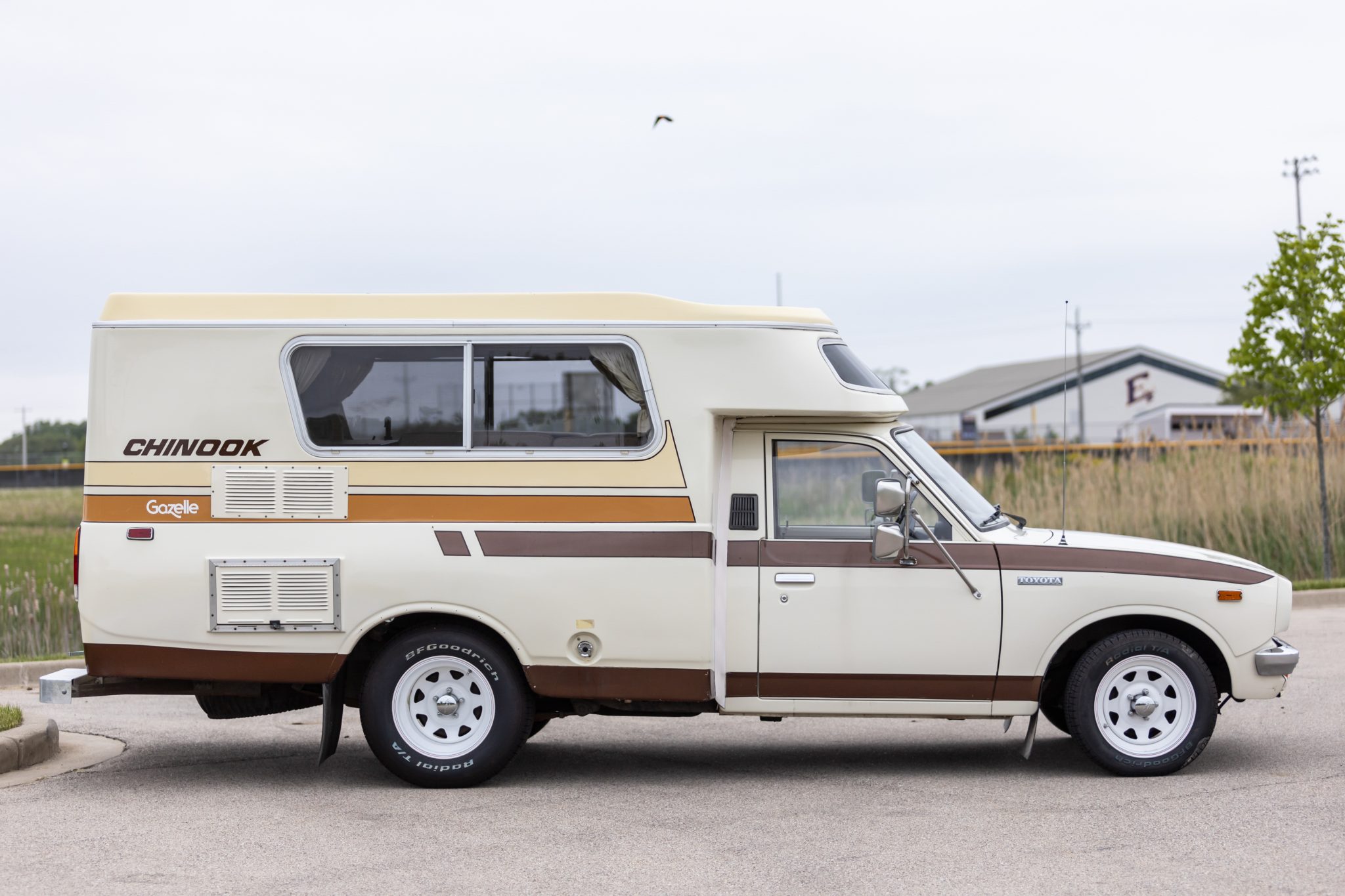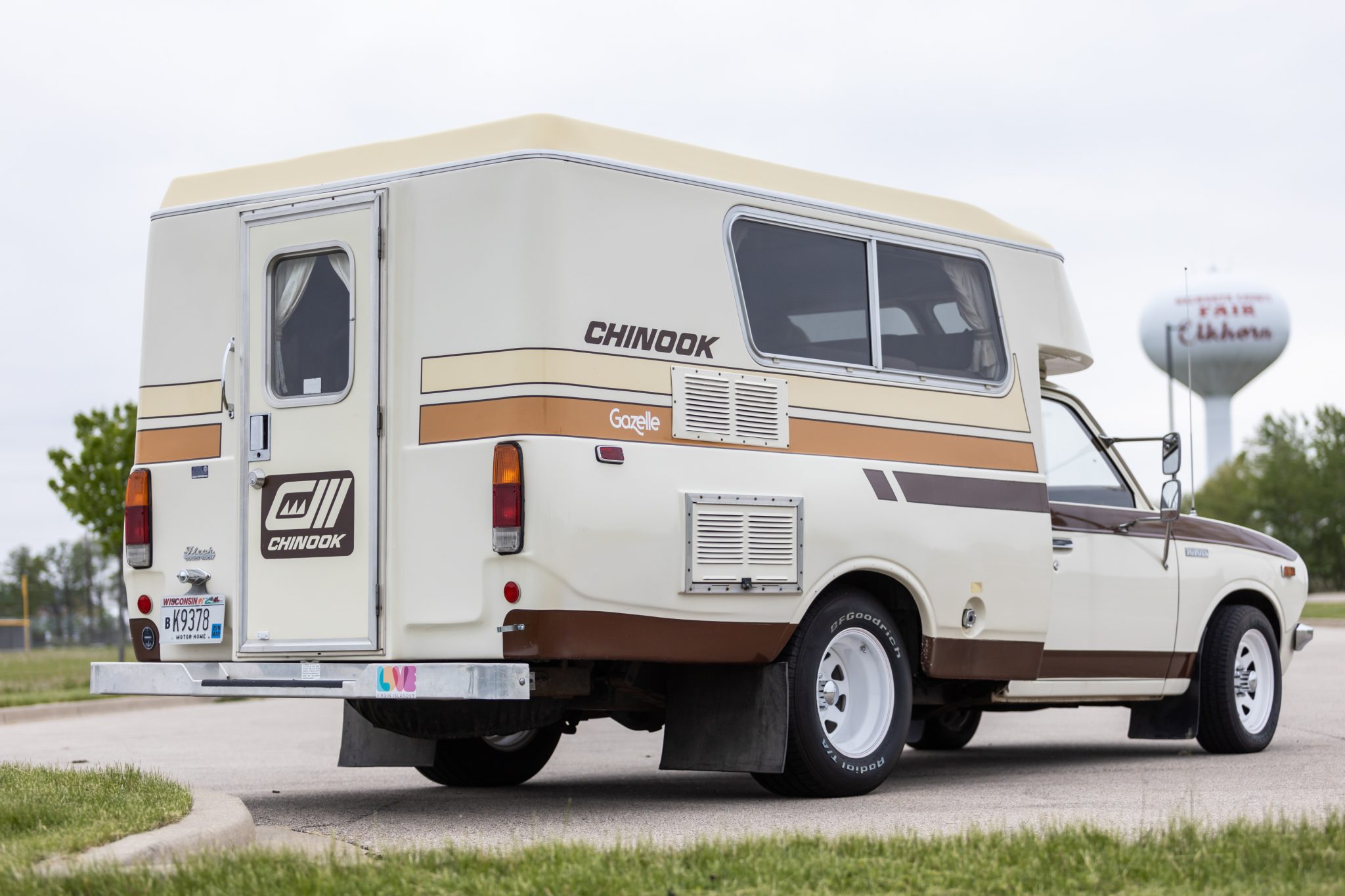 White 15″ steel wheels are mounted with 195/60 front and 275/60 rear BFGoodrich Radial T/A white-letter tires. Braking is handled by front discs and rear drums.