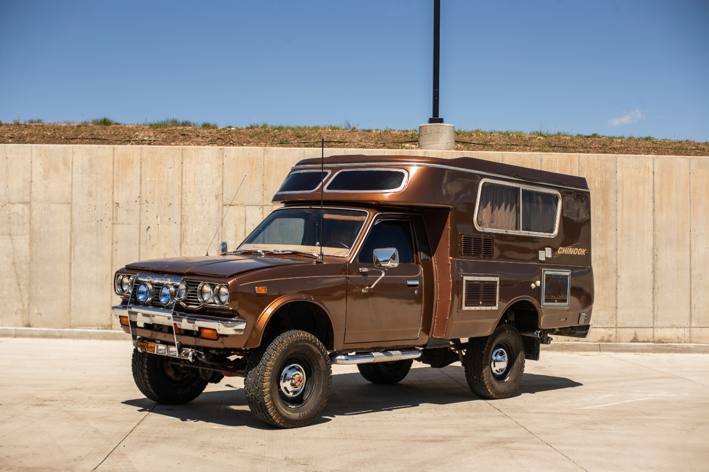 Black-finished 15″ steel wheels are wrapped in 31×10.5″ Wild Country Radial XTX Sport tires. The truck is equipped with a 3″ suspension lift kit up front and a 4″ lift out back, and the front axle is said to have been sourced from a 1980 Toyota 4×4 pickup. Heavy-duty front and rear sway bars have been fitted along with rear air shocks.