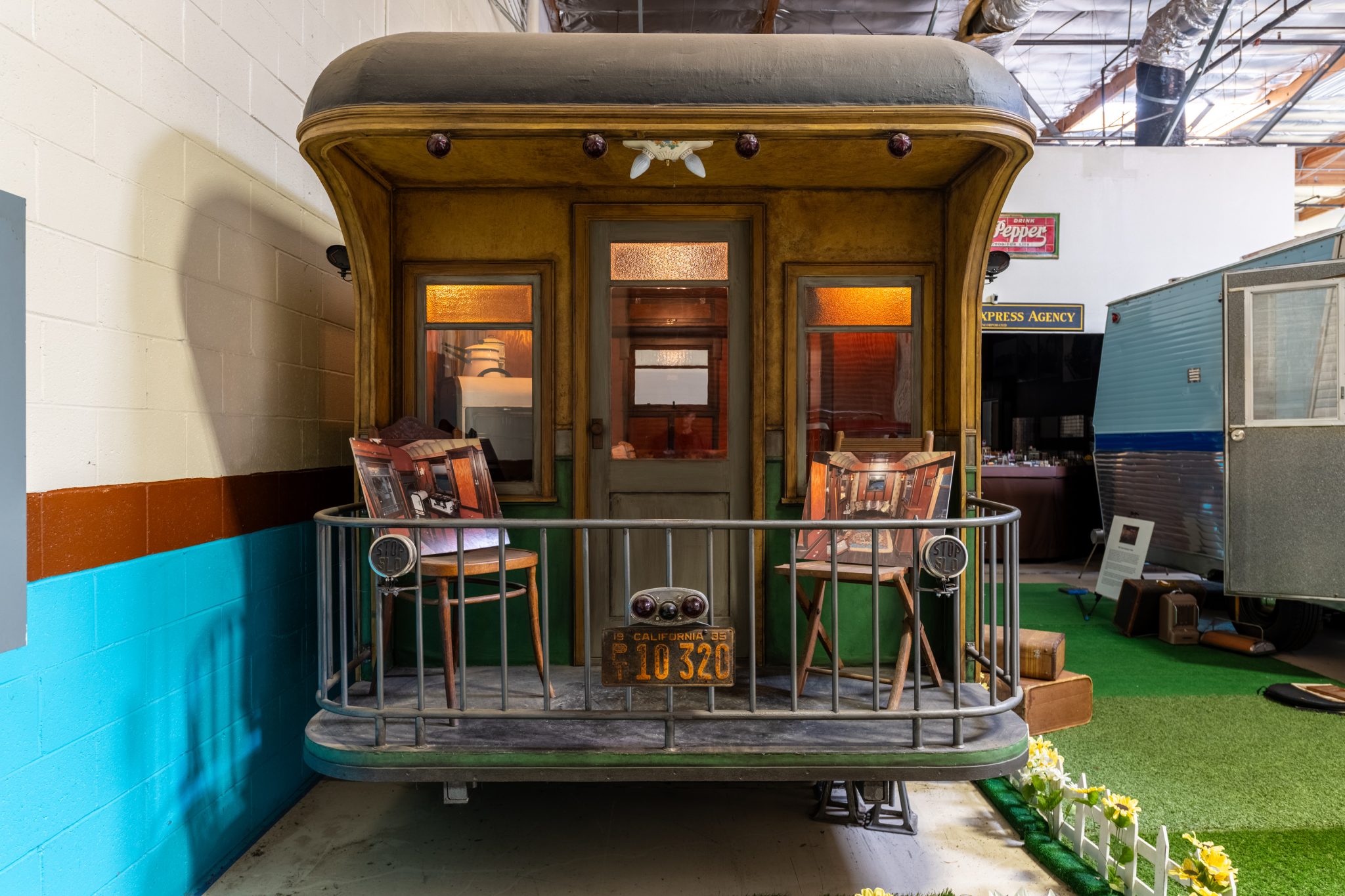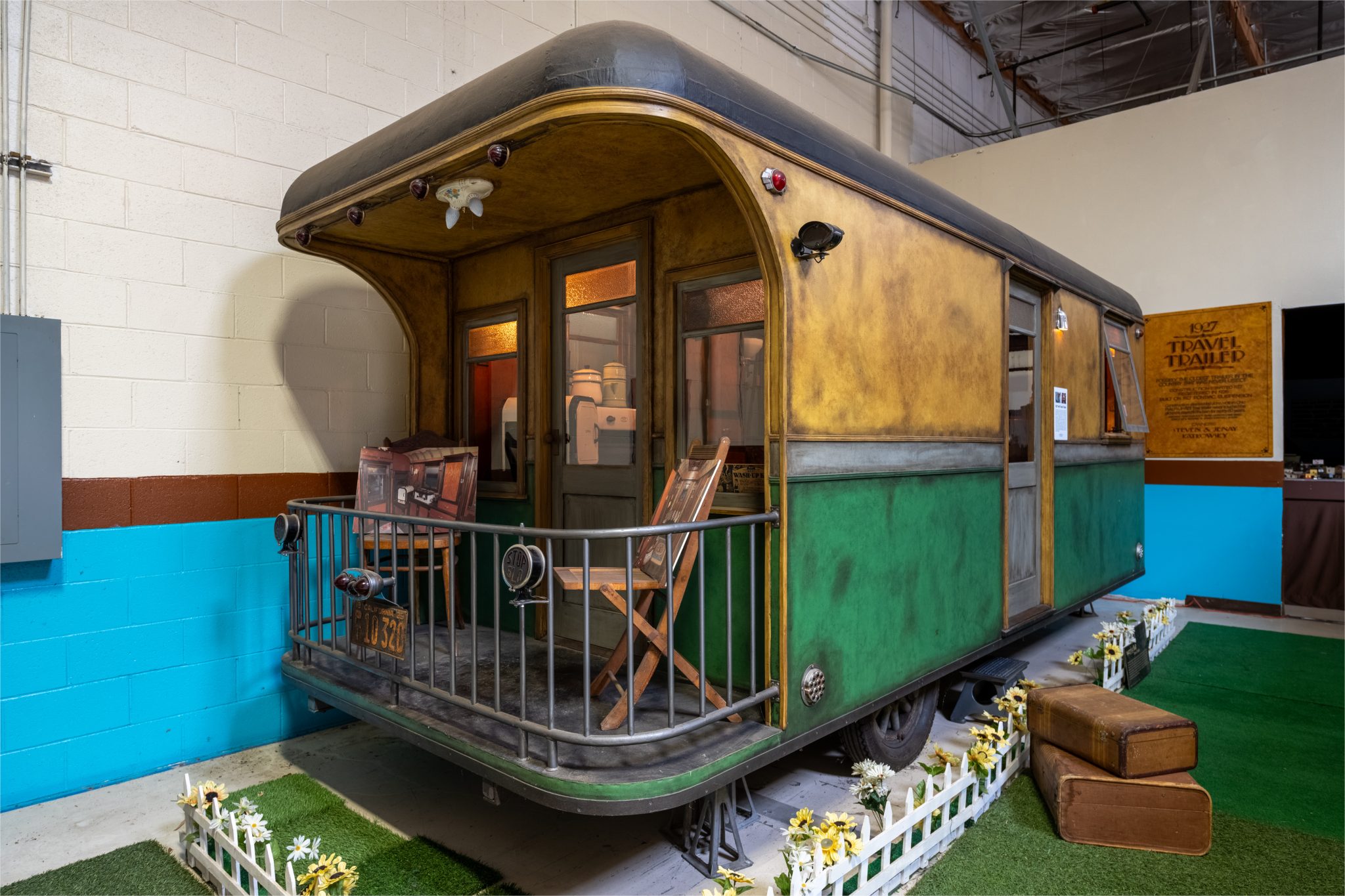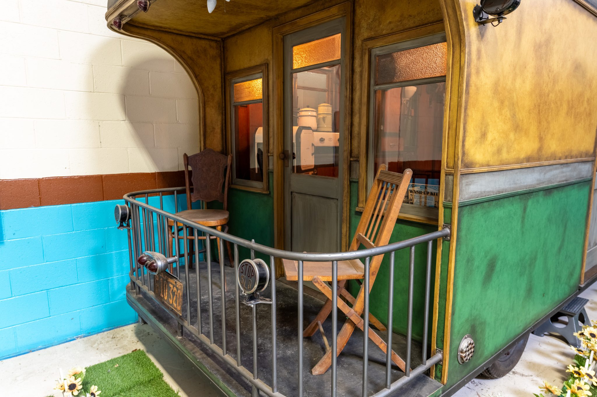 The single-axle chassis rolls on 1927 Pontiac wood-spoke wheels mounted with 475/500-18″ Goodrich Silvertown Cord tires. Suspension is provided by quad multi-leaf springs, and there are no brakes. The hitch was added during the refurbishment and is equipped with a steamer trunk platform, a trailering harness, a 2″ ball coupler, and a manual tongue jack.