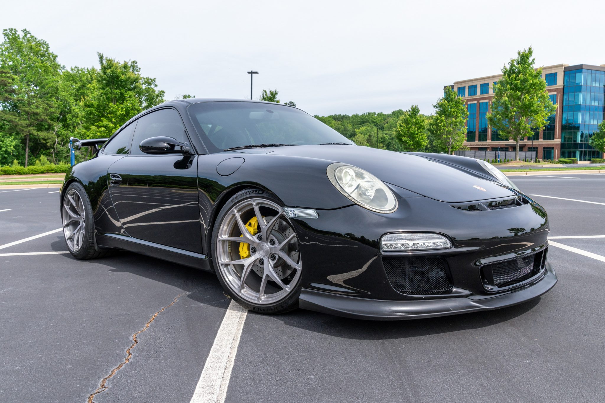 Brushed Gray-finished 19” BC Forged RZ21 wheels are wrapped in 245/35 front and 315/30 rear Michelin Pilot Sport 4 S tires that have 2020 and 2022 production-date codes, respectively. The car was factory-equipped with Porsche Stability Management (PSM), an active brake differential (ABD), and Anti-Slip Regulation (ASR). Braking is handled by yellow-finished, multi-piston, Porsche-branded calipers fitted over cross-drilled and vented rotors, and the suspension has been fitted with ride-height-adjustable H&R Street Performance coilovers as well as 24mm sway bars.