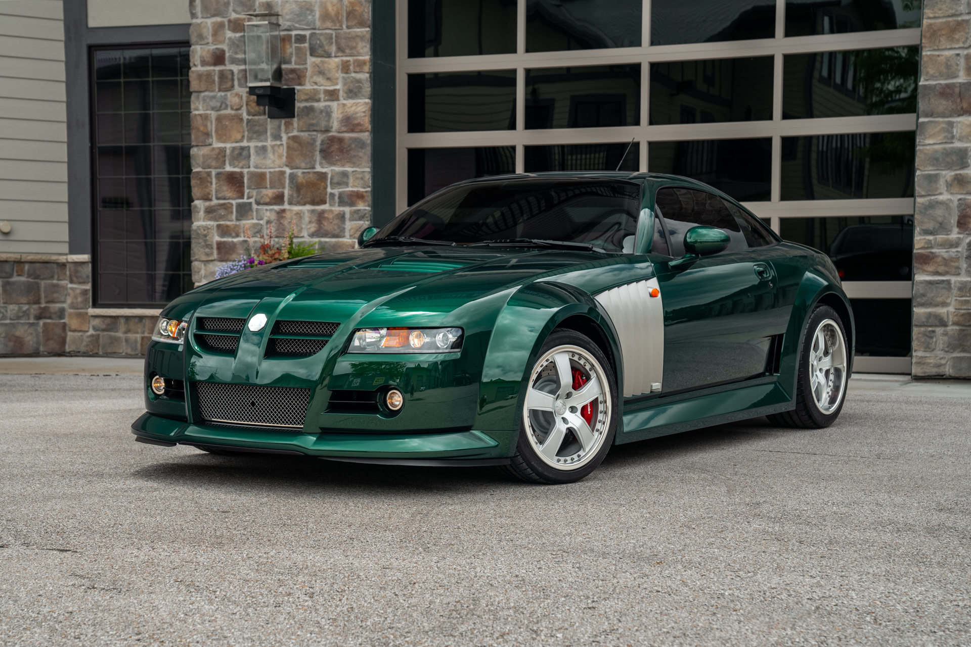 This example is finished in British Racing Green and features contrasting silver fender vents as well as a front splitter, projector headlights, front and rear foglights, power-folding mirrors, green-tinted windows, a rear diffuser, and chrome exhaust outlets that exit through the rear bumper.