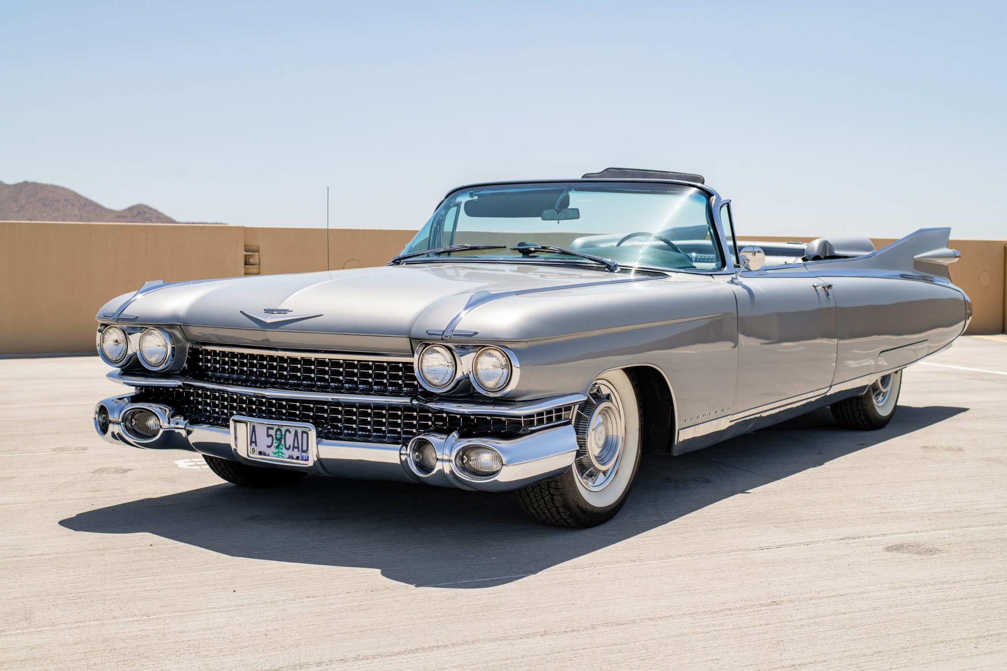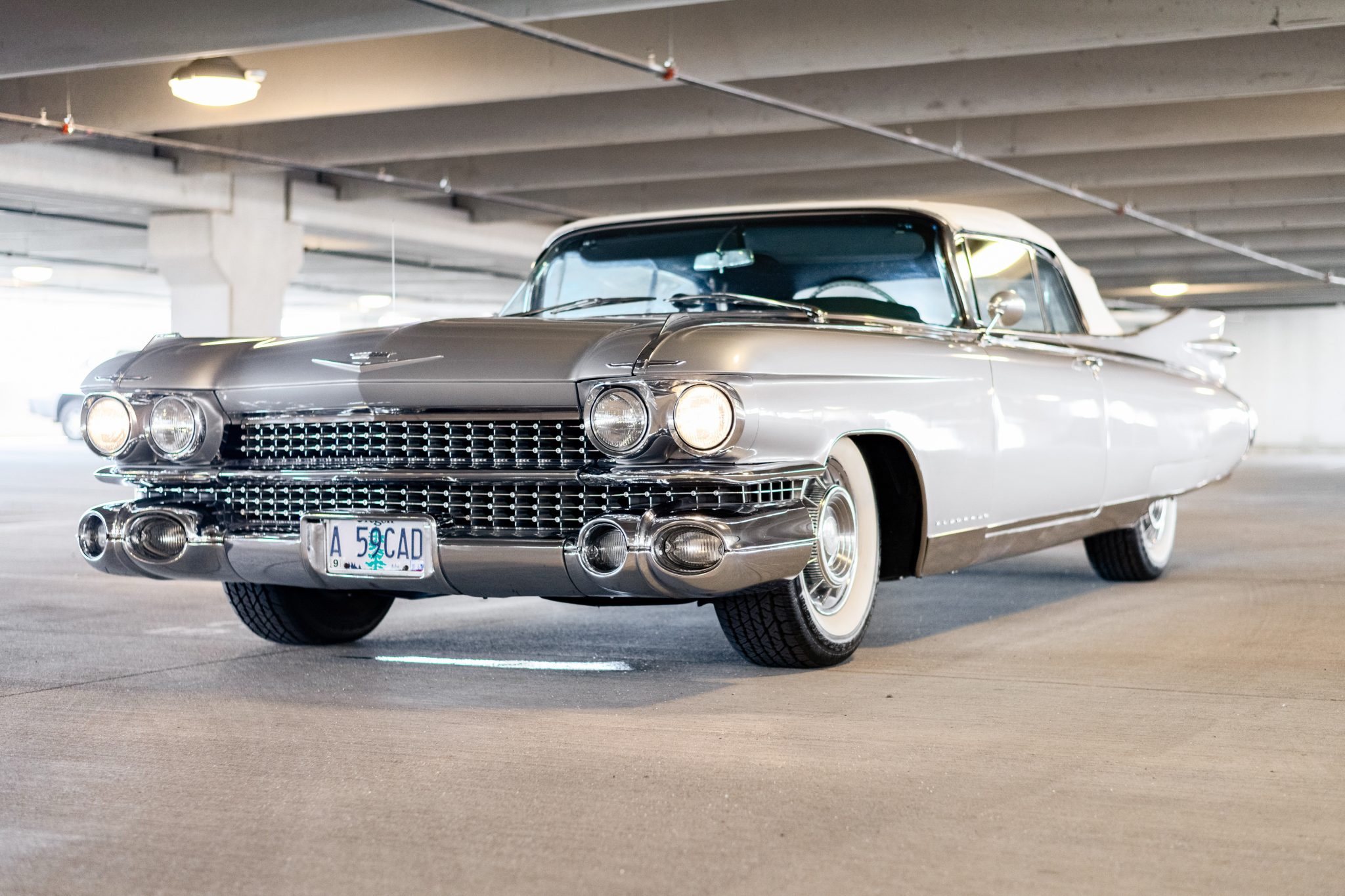 The 15″ steel wheels wear fluted Cadillac crest hubcaps and are mounted with 225/75 BFGoodrich Silvertown Radial whitewall tires. A non-matching spare is located in the trunk. The car is equipped with power steering, and braking is handled by power-assisted drums at all four corners.