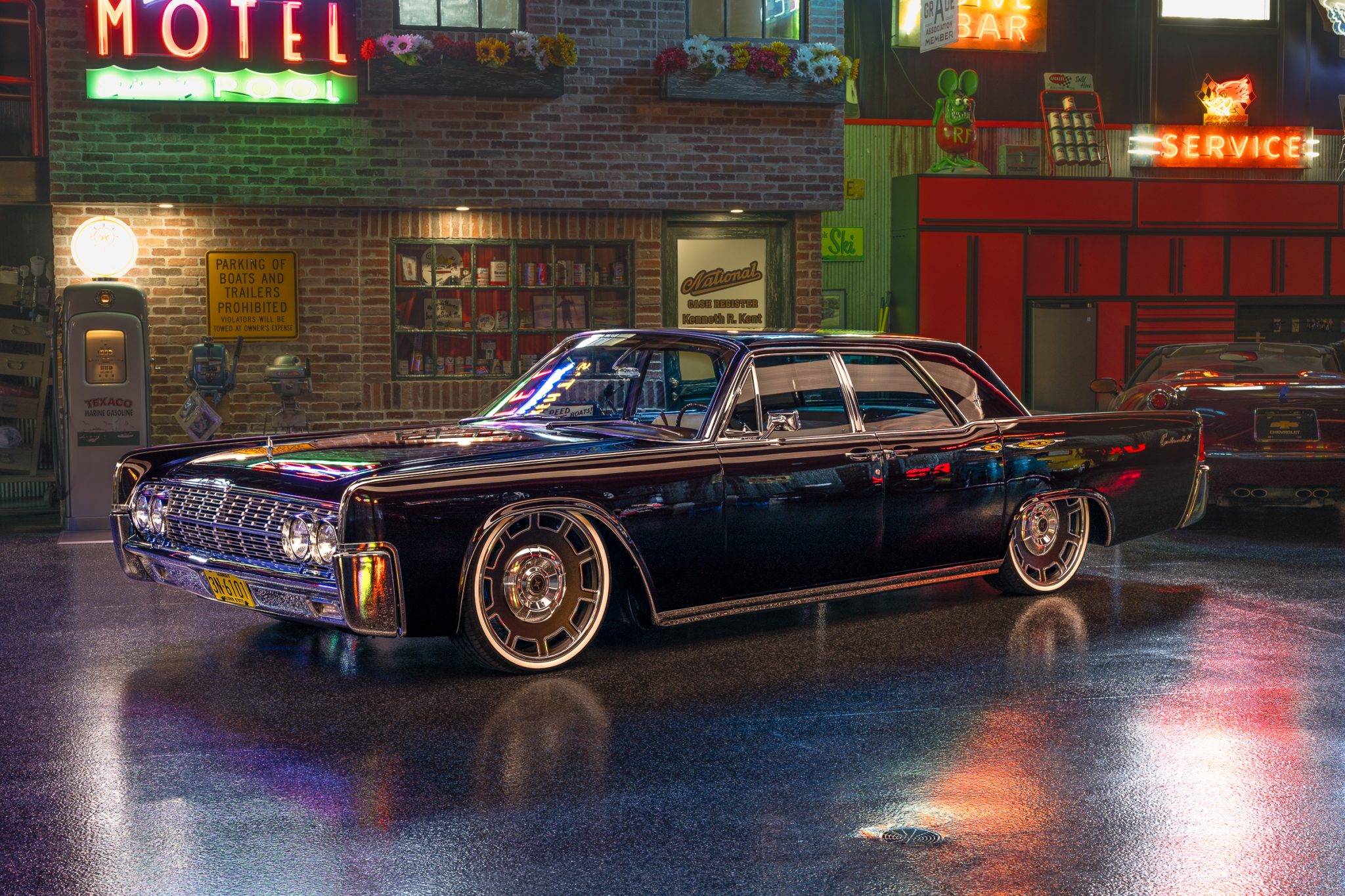 The car rides on an Air Lift suspension kit with a 3P air management system, and Ridetech front air springs, control arms, and shock absorbers are fitted as well as Slam rear air springs, trunk-mounted VIAIR compressors, dual air tanks, and revised limit straps and bump stops.