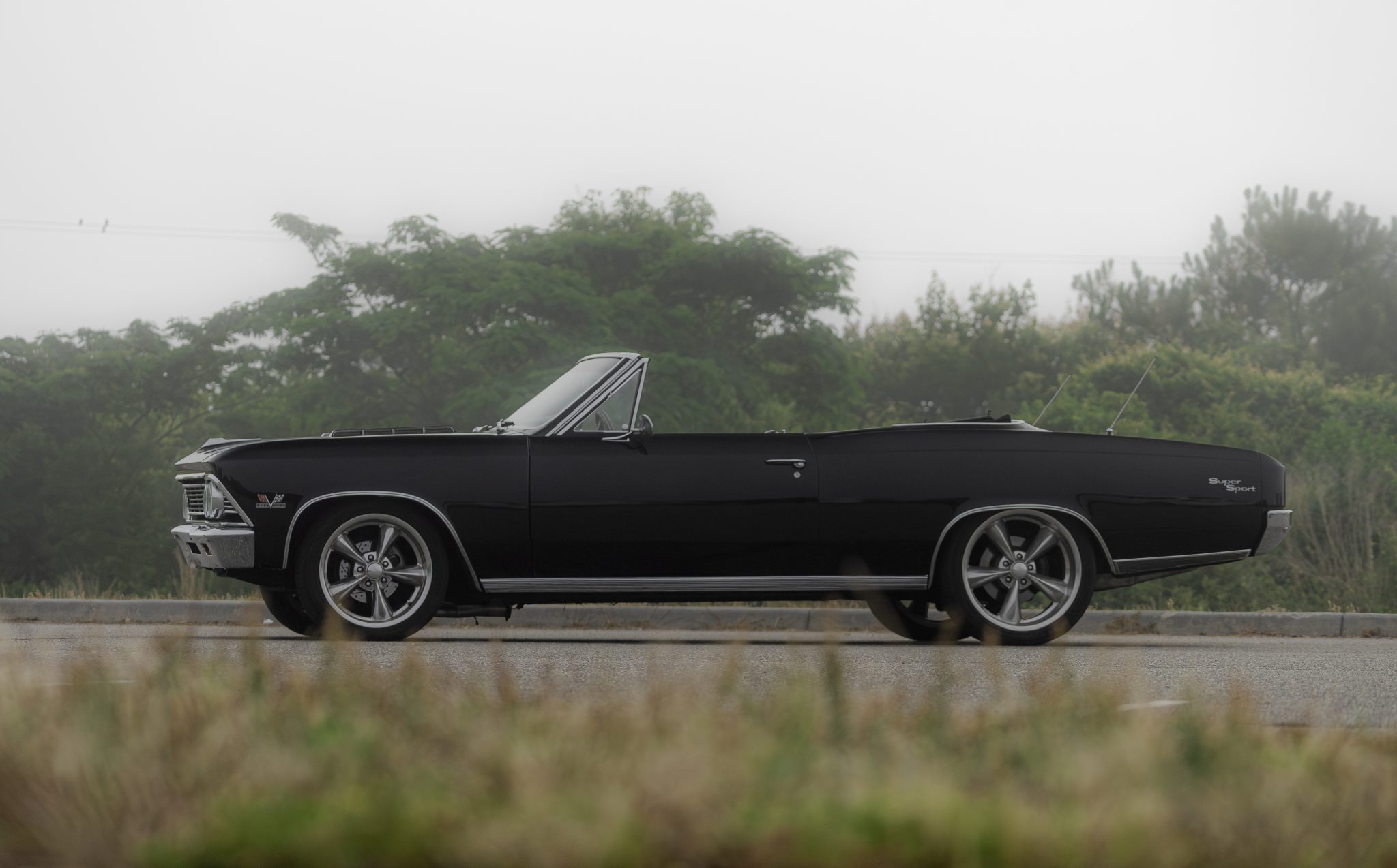 Billet Specialties 18″ front and 20″ rear wheels are mounted with a mixed set of Sentury and Lexani tires. The car rides on a lowered suspension with Ridetech coilovers, and braking is provided by power-assisted four-wheel discs with Wilwood rear calipers.
