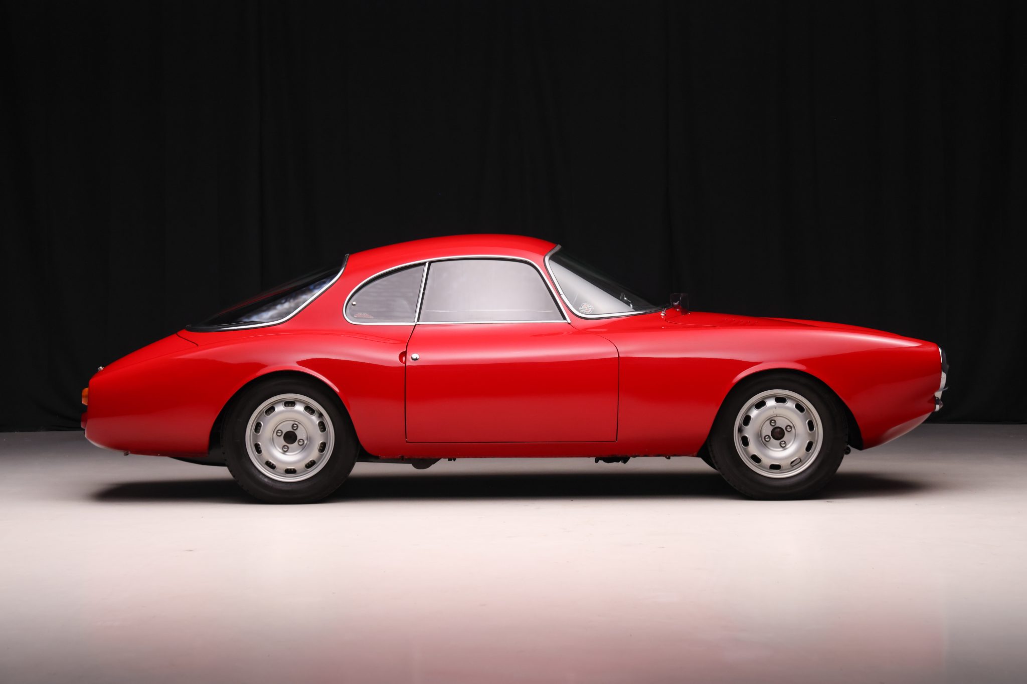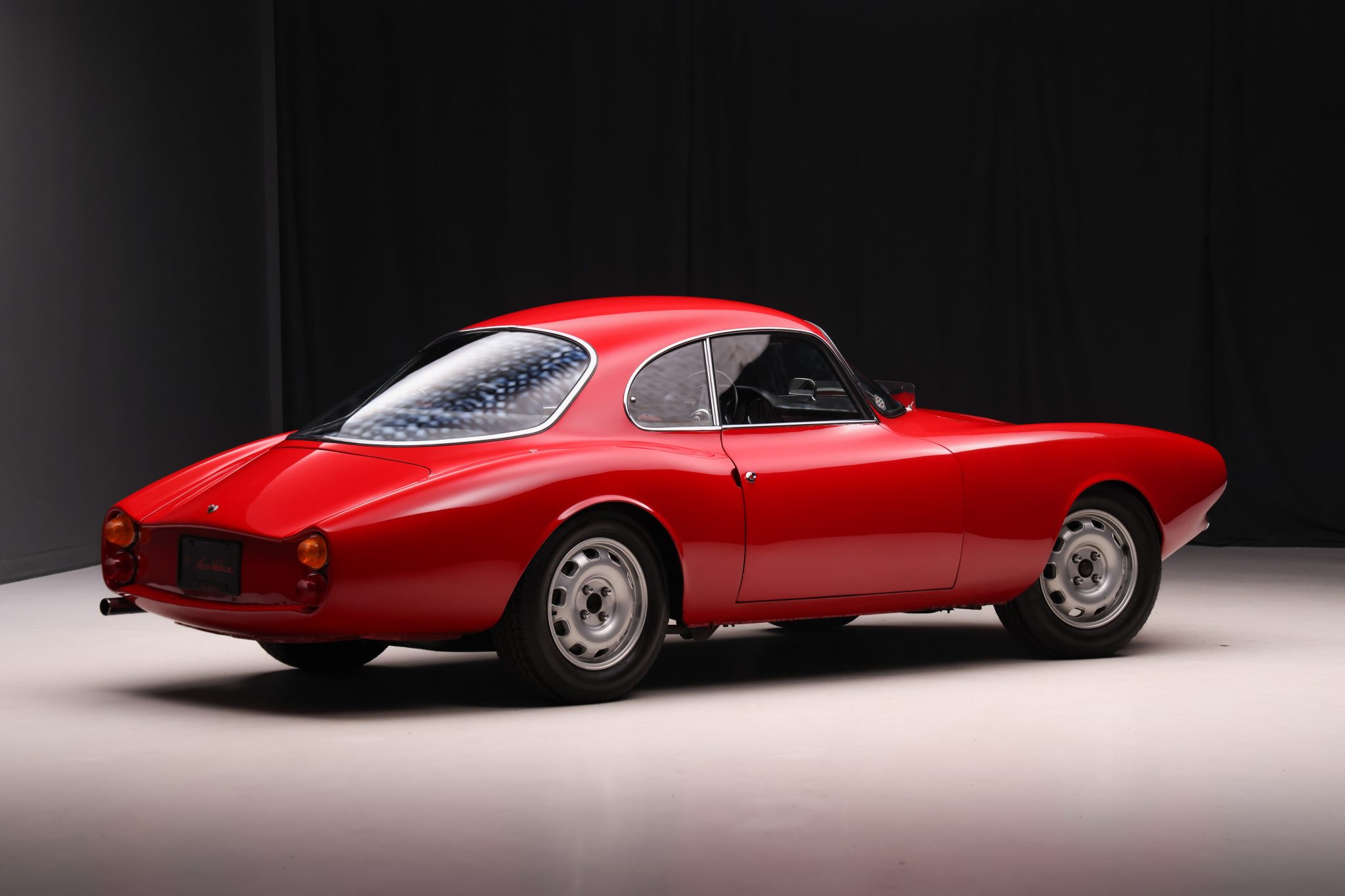 TZ-Style 15″ wheels are mounted with 185/70 Vredestein Sprint Classic tires with 2013 date codes. The Giulia SS came fitted with front disc and finned rear drum brakes from the factory.
