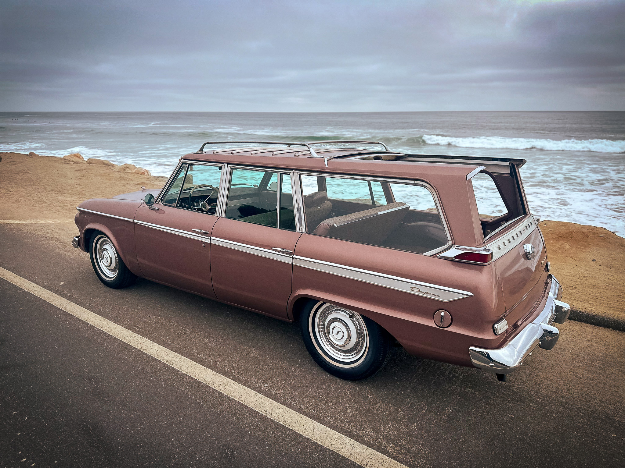 Delivered from the factory in Rose Mist, this example received rust repair before it was repainted in June 2016. An invoice for the work totaling $11k can be seen in the gallery. Equipment includes chrome bumpers and trim, quad headlights, a hood ornament, dual side-view mirrors, a chrome roof rack, and reverse lights. The seller notes paint bubbles on the passenger-side rear roof rail.