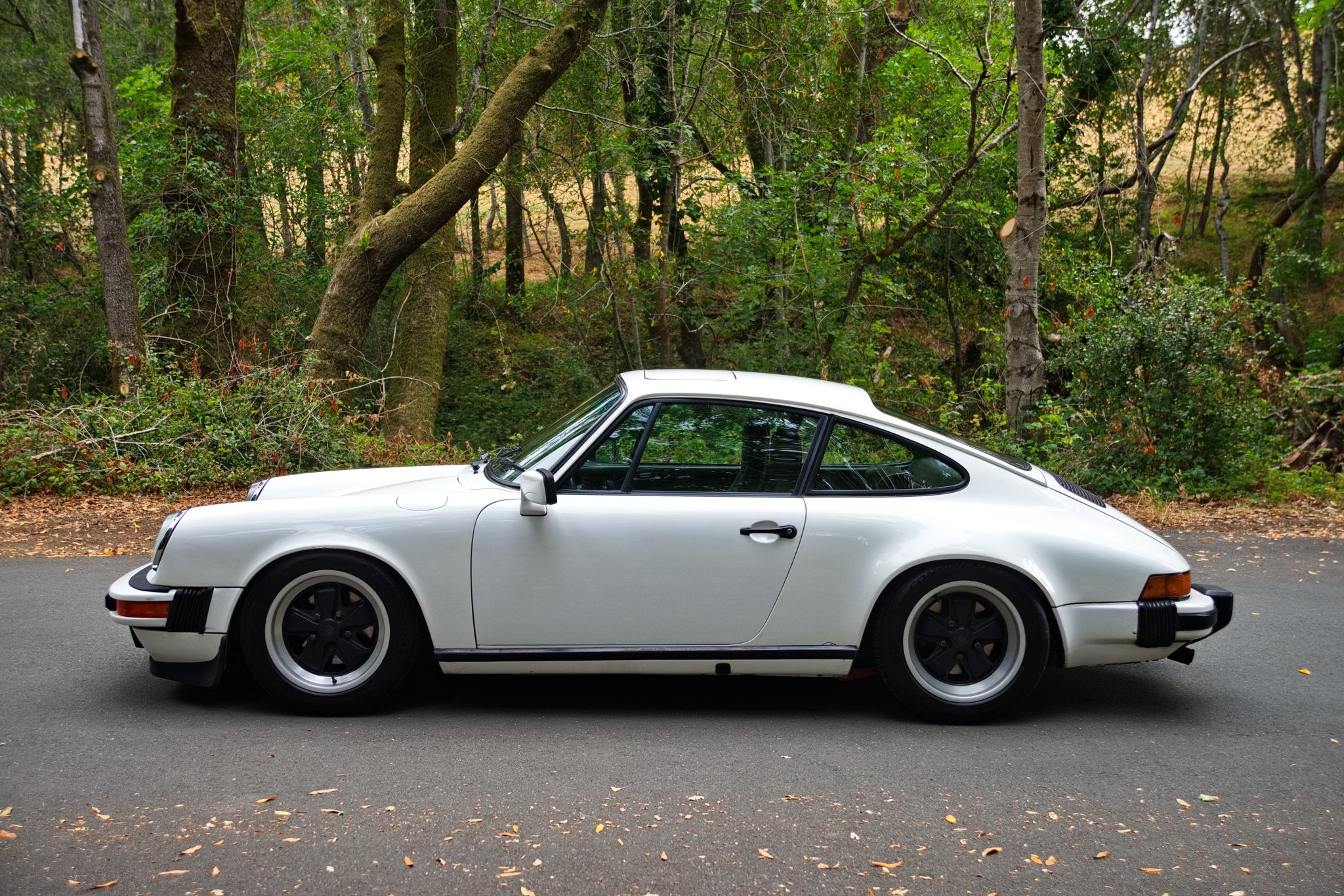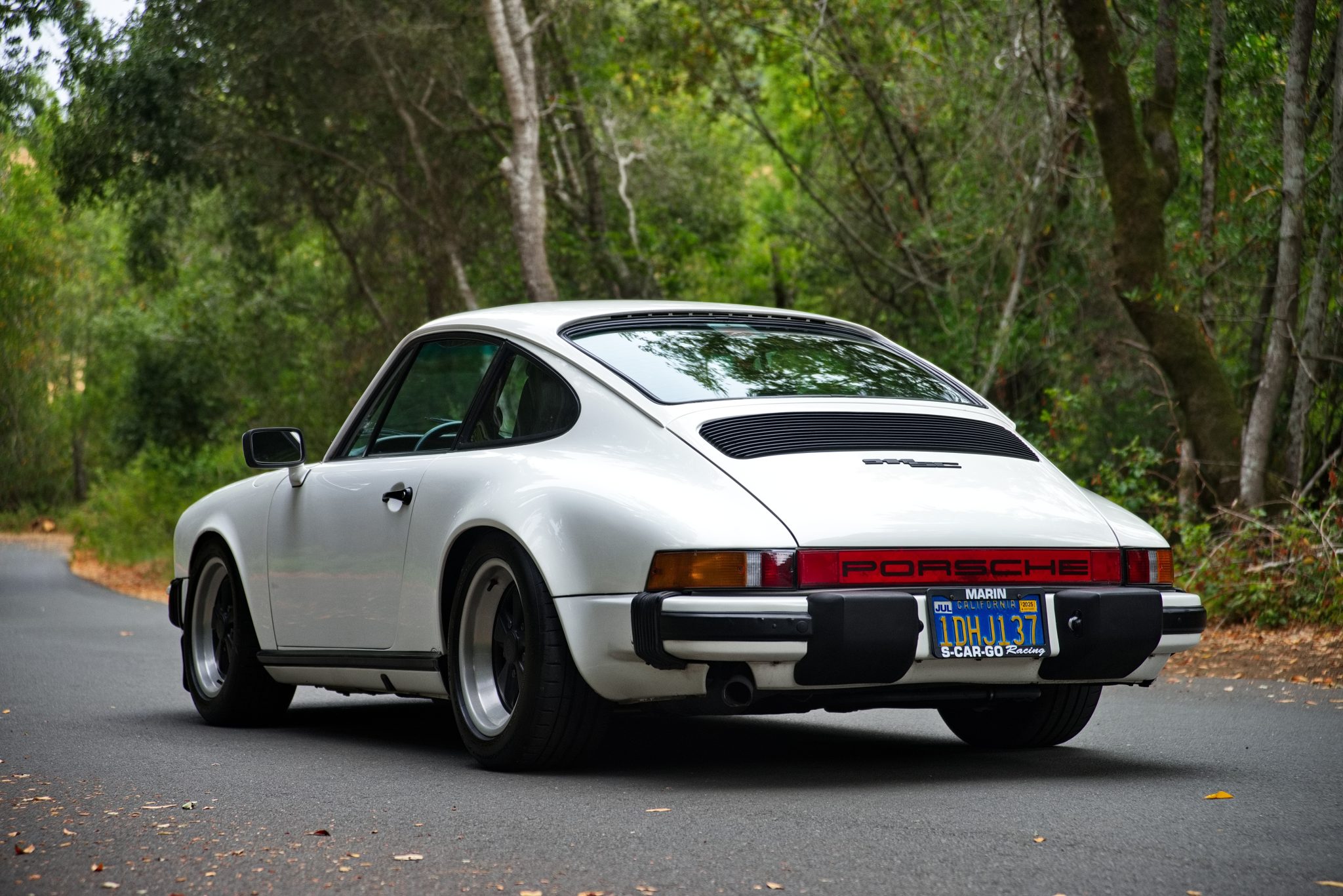 Fuchs 16″ wheels with black-finished centers measure 7″ wide in front and 8″ wide out back, and they were fitted in 2021 with Continental ExtremeContact Sport 02 tires measuring 205/55 and 225/50, respectively. Braking is provided by power-assisted four-wheel discs with ventilated rotors, and work performed in 2018 consisted of rebuilding all four calipers and installing a replacement master cylinder and rotors. The suspension system was reportedly overhauled in 2022 with custom Bilstein B6-specification dampers with digressive valving from Elephant Racing, 21mm front and 26mm rear torsion bars, Tarett Engineering adjustable sway bars, and replacement bushings all around. Rennline ball joints were fitted along with 930 Turbo tie rods, an Elephant Racing bump-steer kit, and replacement rear wheel bearings before the car was lowered by S-Car-Go Racing.