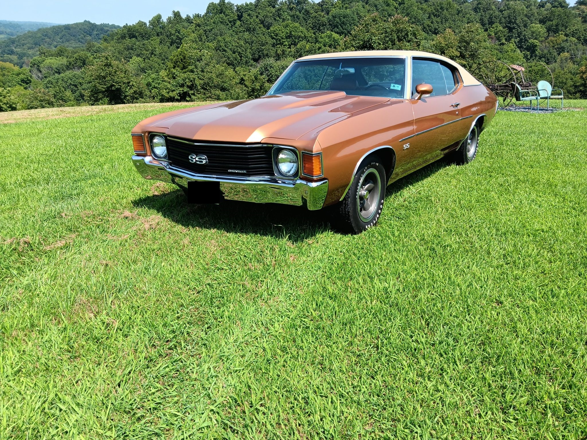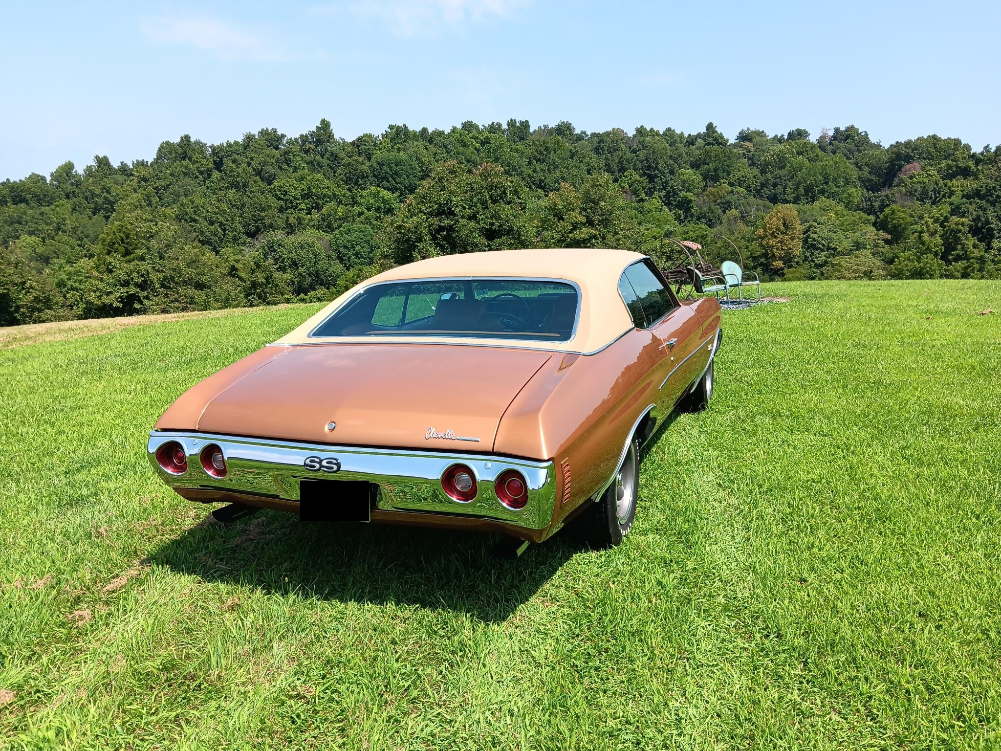 The 15″ SS wheels are mounted with Goodyear Polyglas GT tires. The car is equipped with power steering, and braking is handled by power-assisted front discs and rear drums.