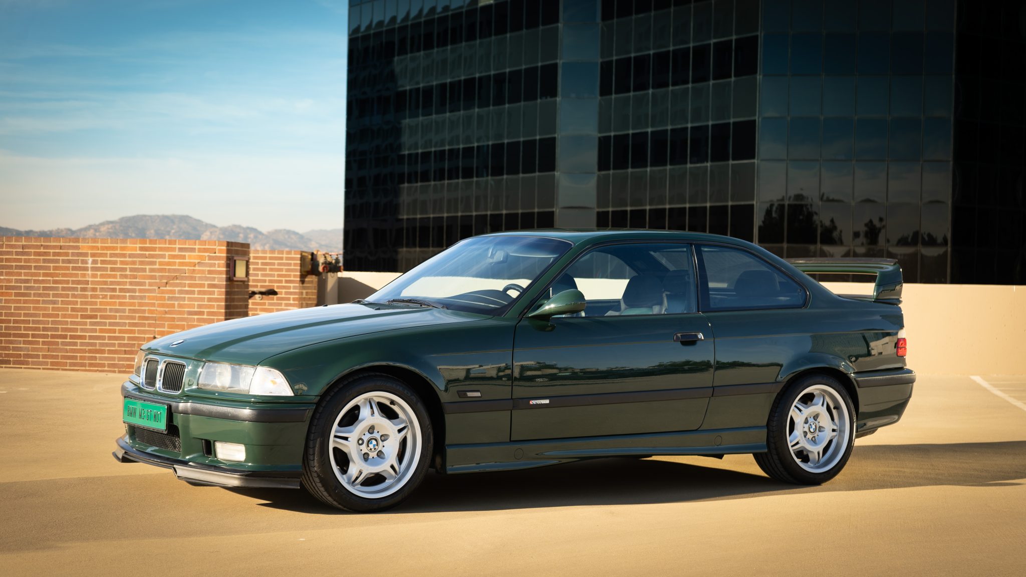Forged-alloy 17″ Style 24 BMW Motorsport wheels are mounted with 225/45 front and 245/40 rear Fulda SportControl tires. A matching spare with a Michelin tire is stowed in the trunk. The car was equipped from the factory with a strut-tower brace as well as stiffer springs and shocks over the standard M3. Bilstein coilovers were installed in the early 2000s, and the suspension is said to have been reverted to the factory configuration prior to the seller’s acquisition. A brake fluid flush was completed in September 2023.