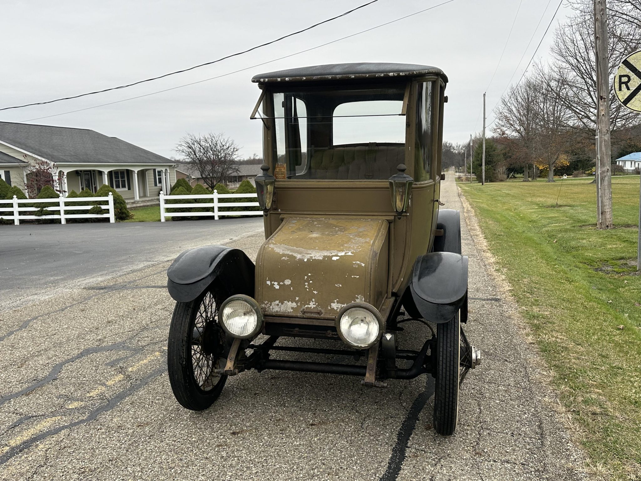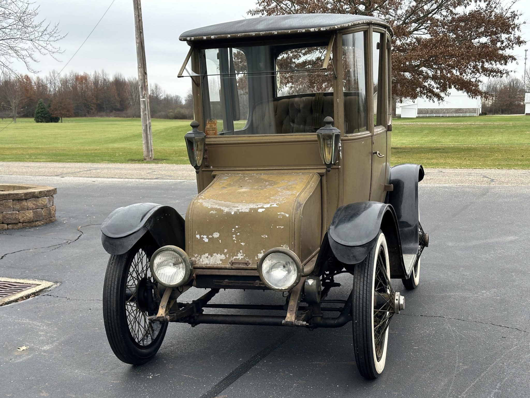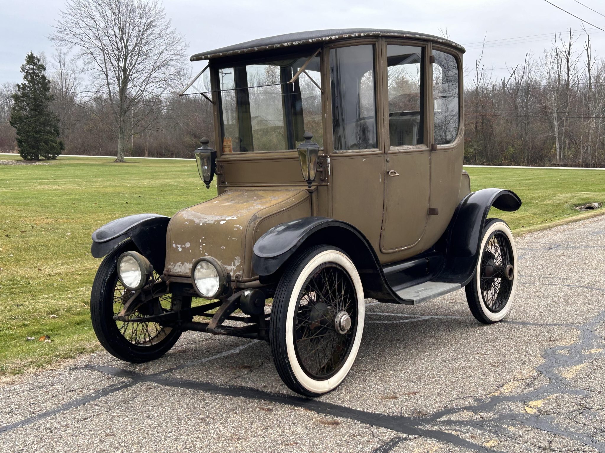 The wire-spoke wheels wear chipped black paint and Baker Electric-branded hubcaps, and they are mounted with older bias-ply whitewall tires. The left rear hubcap is missing. The Model DA rode on a 90″ wheelbase and featured live axles with leaf springs at all four corners. Rear mechanical drums are retained.