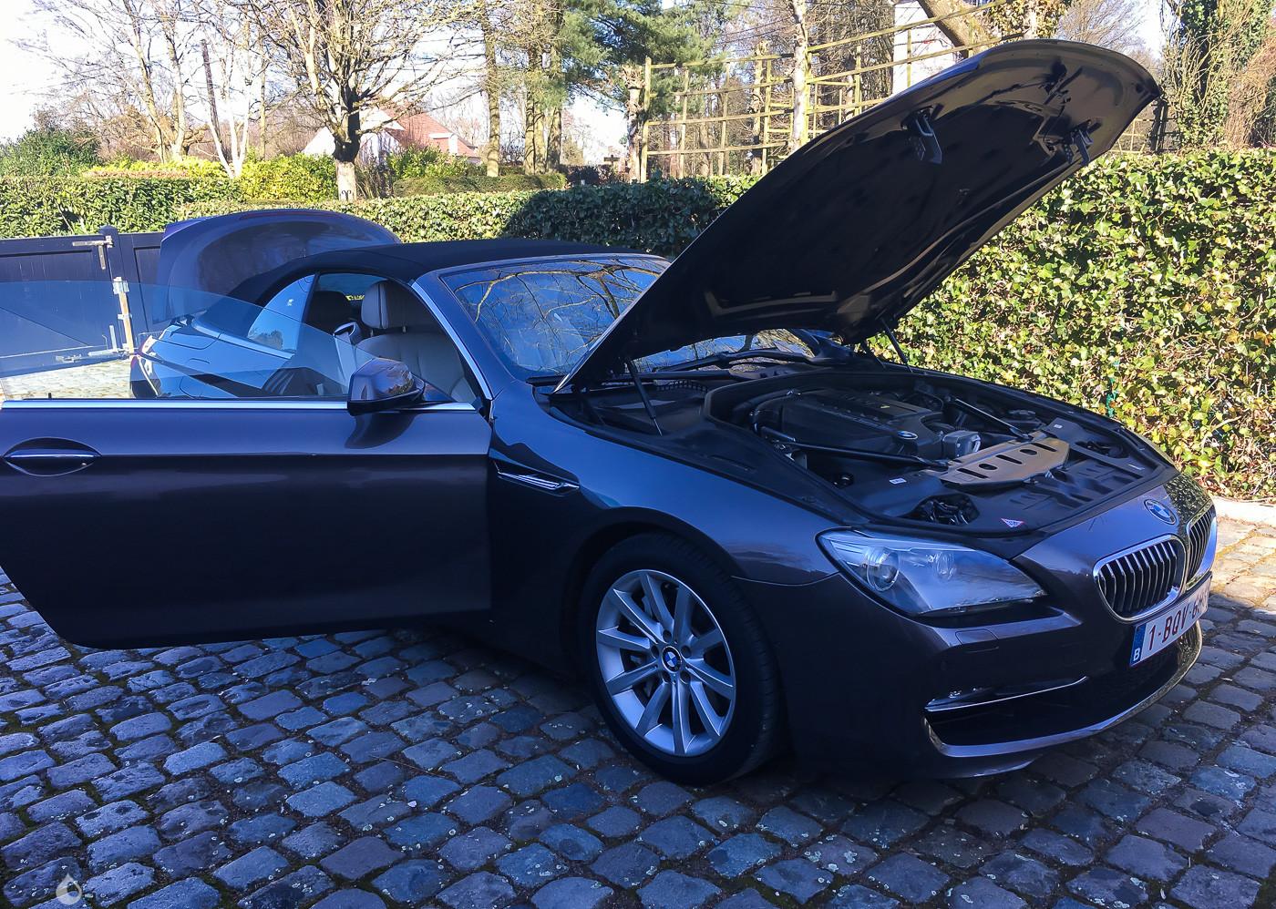 On the outside, this 6 Series Convertible is in excellent condition. The Havanna paint shows no major dents or scratches. It is equipped with aluminum surrounds and Adaptive Headlights in excellent condition. The exterior seals and plastics are also in excellent condition, showing no discoloration.