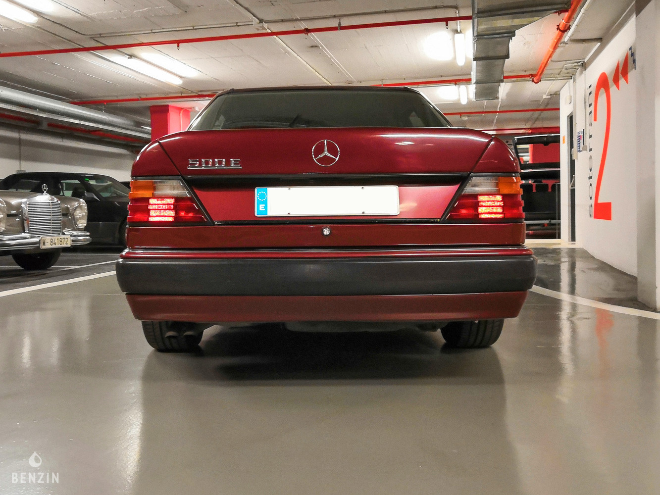 The interior is in very good condition and completely original. The black leather upholstery has no tears or holes but shows very slight traces of wear. The steering wheel and dashboard are very well preserved and show no visible patina. The wood inserts are also in good condition. The on-board instrumentation and the electrical equipment are working normally. This 500E has automatic air conditioning, a car radio and a cassette player.
