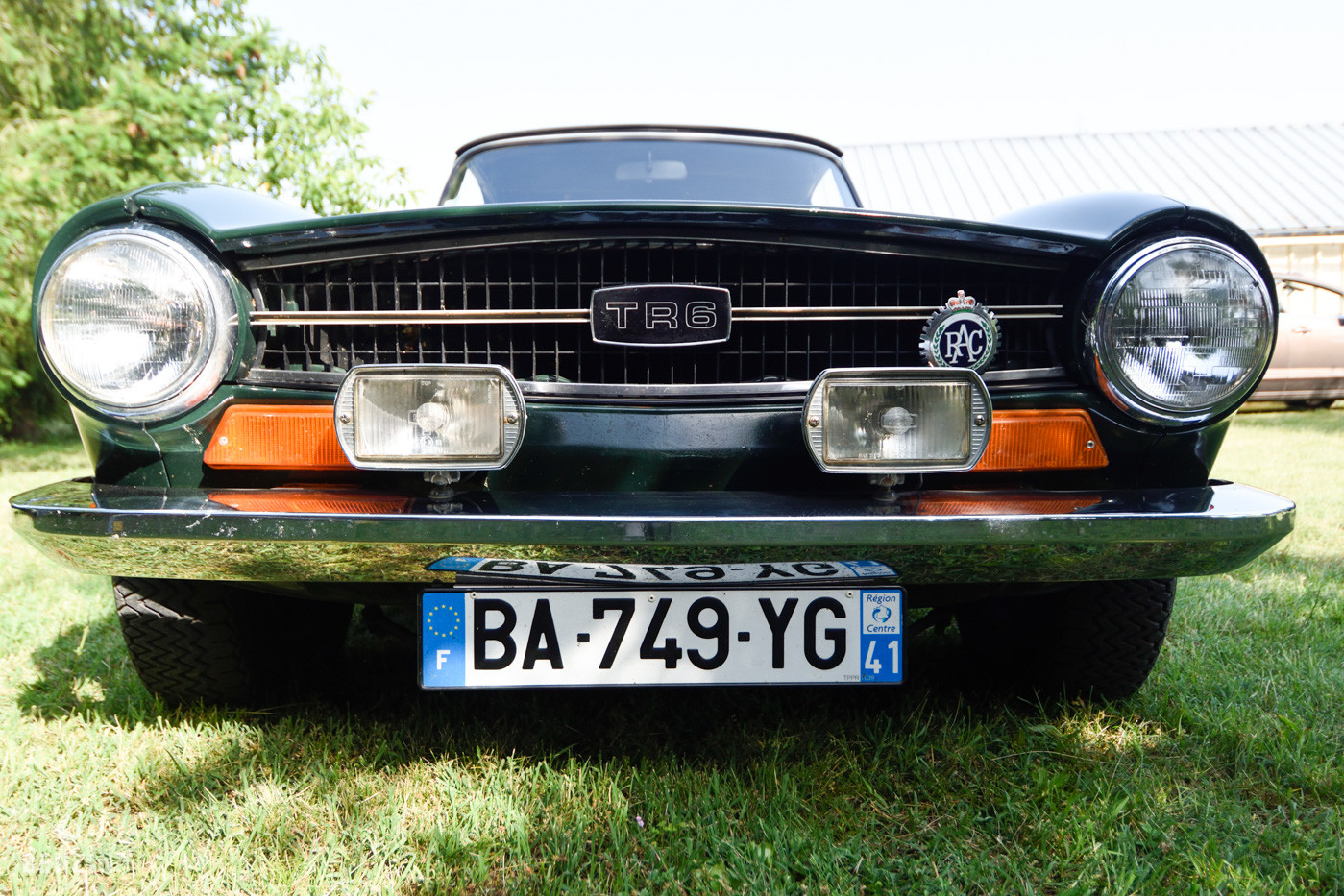 On the outside the car is in very good condition. The paint in its green color has only very few defects visible in the gallery. The exterior plastics and seals are in good condition, as well as the front and rear lights. The seller indicates that the chassis of this TR6 is sound. He also states that the car is fully original on the outside. This Triumph is equipped with a luggage rack.