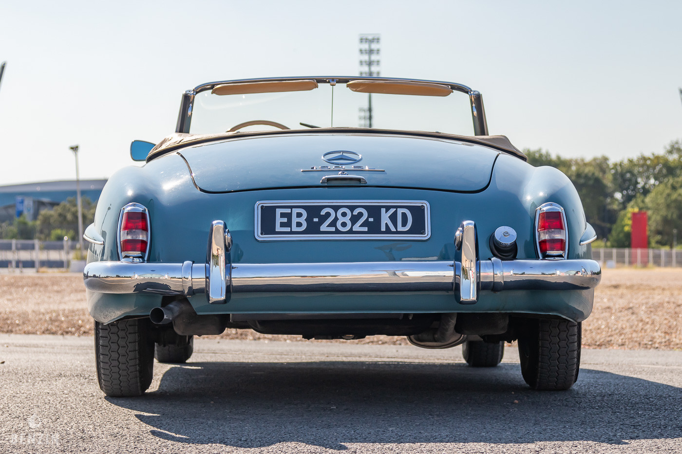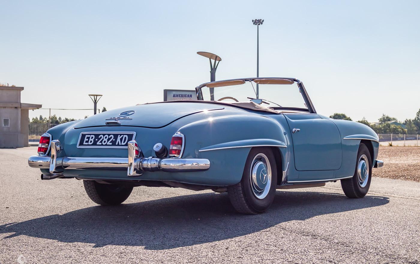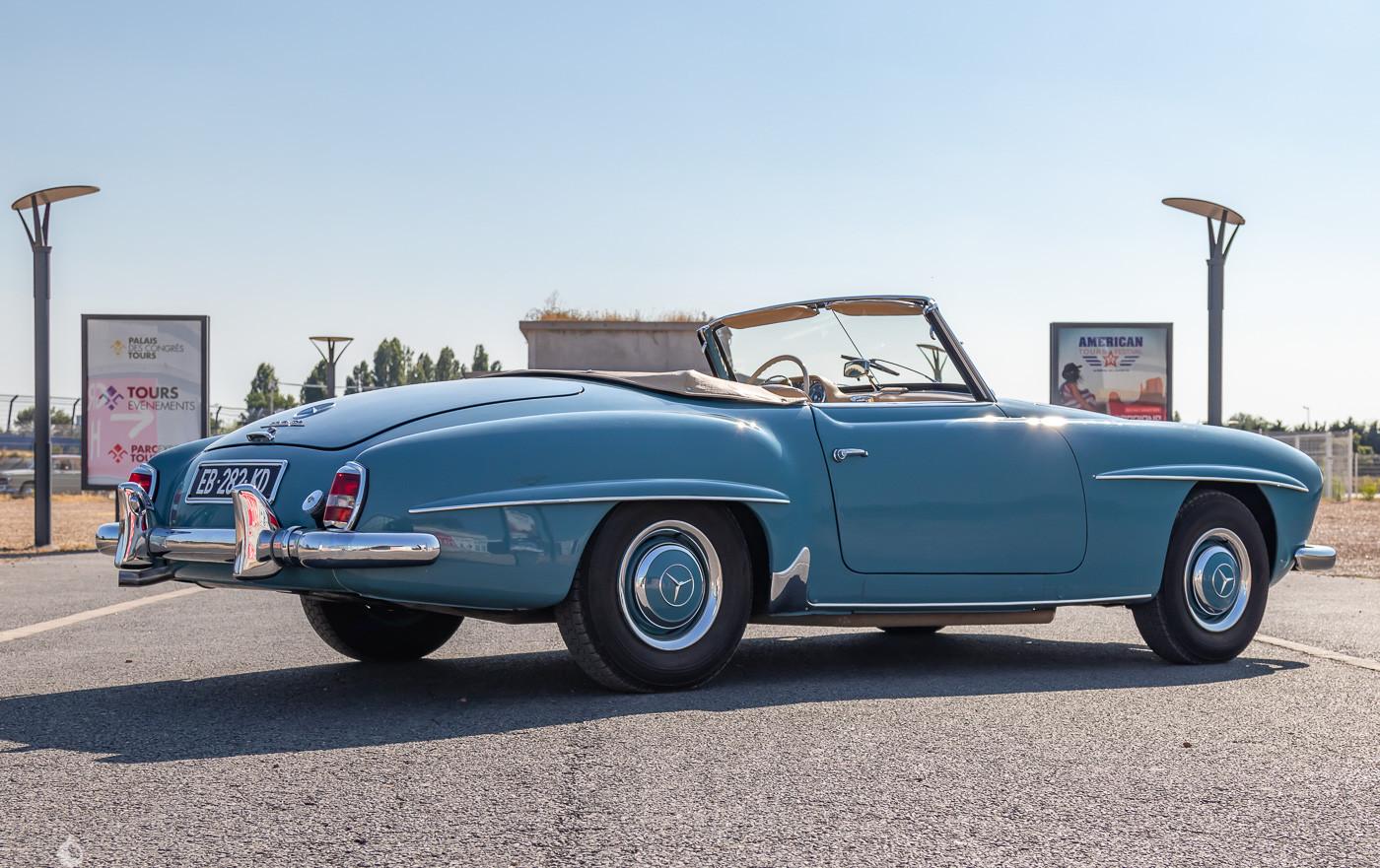 On the outside the car is in excellent condition. The paint in its blue color has no defects. The seller indicates that the vehicle has benefited 15 years ago from a paint veil. The exterior plastics and seals are in excellent condition, as are the front and rear lights. The front lights are new (CibiƩ brand). The front bumper has been rechromed and a new soft top has been installed. The seller indicates that this Mercedes is rust free. He also specifies that the car is entirely original.