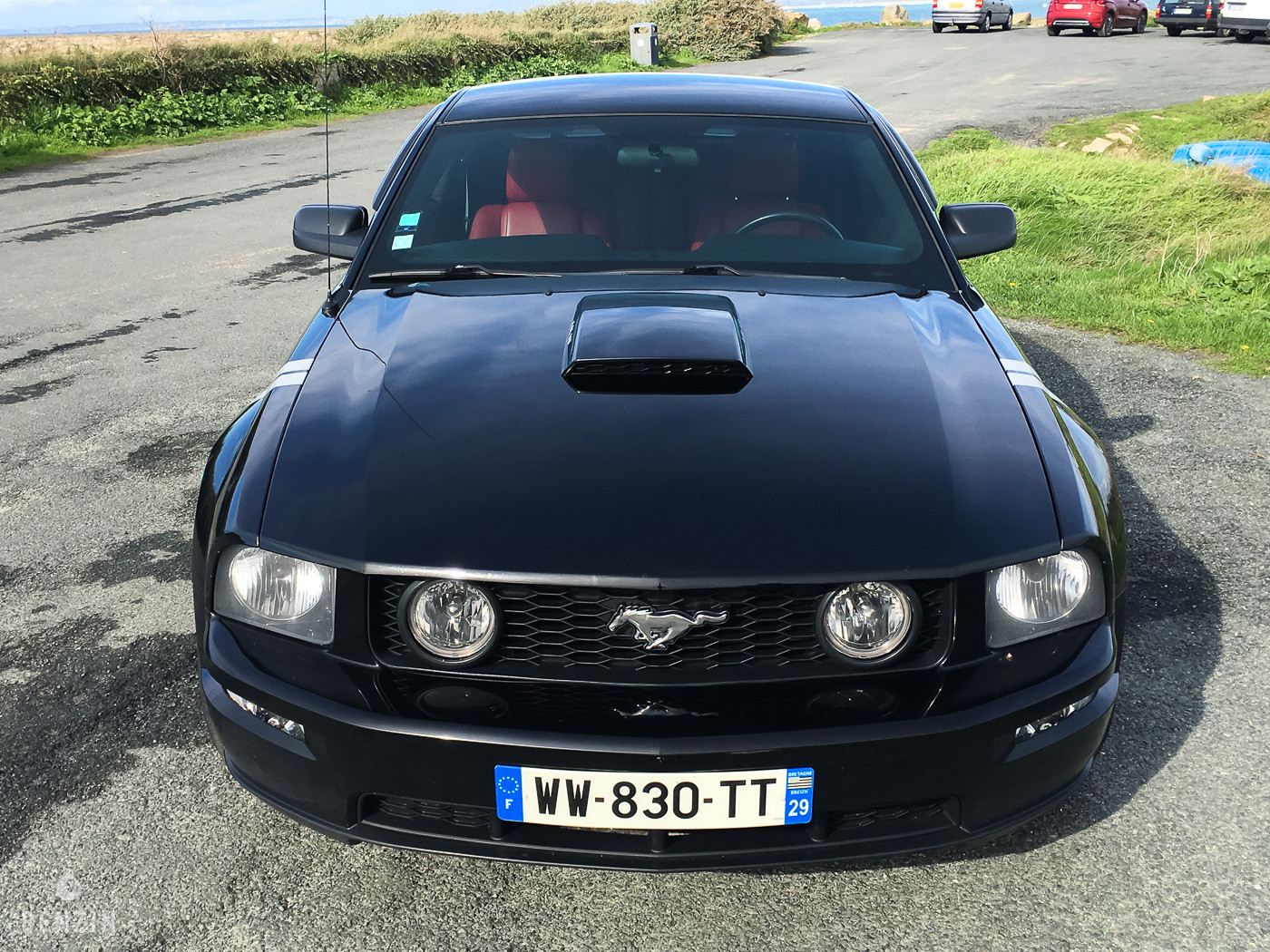 On the outside the car is in good condition. The paint in its black color shows some minor defects visible in the gallery. The exterior plastics and seals are in good condition as well as the headlights. The seller specifies that the car is equipped with a "Ford Racing" type body kit including a hood air intake and two side air intakes. He also indicates that the car is rust free.