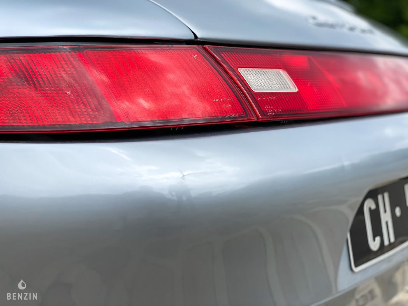 On the outside the car is in very good condition. The original paint shows only a few minor defects. The bodywork is in excellent condition and shows no noticeable dents. This 993 has an original sunroof, and the option of a rear window wiper.