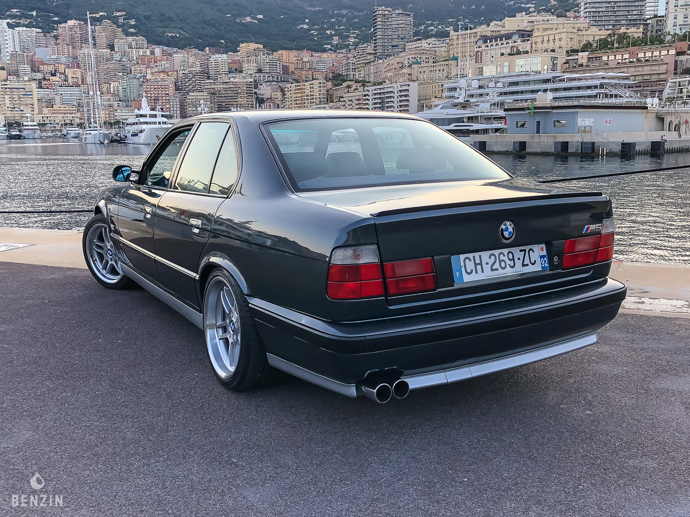 On the outside the car is in very good condition. The paint in its Diamant-schwarz (181) color shows only a few visible defects in the gallery. A few micro scratches can be noticed. The exterior plastics and seals are in good condition, as well as the headlights. The headlights are not original. The seller indicates that this M5 is free of corrosion.