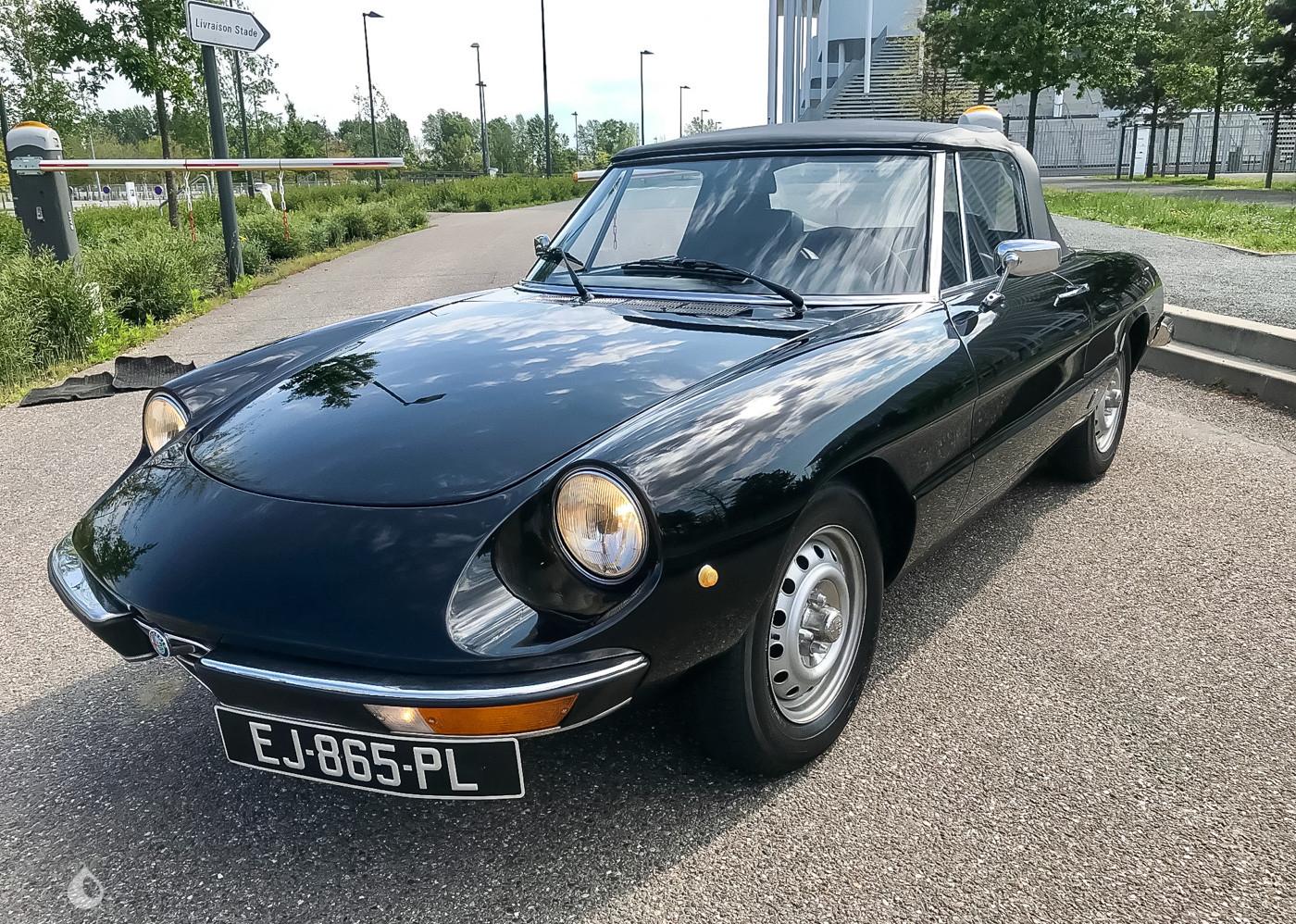 On the outside the car is in very good condition. The paint in its original black color was redone in 2007, so it has only very few visible defects in the gallery. The exterior plastics and gaskets are in good condition, as well as the headlights and the soft top. The seller indicates that the chassis of this Spider 1300 is sound. The front cross member shows some surface corrosion. He also states that the car is fully original on the outside.